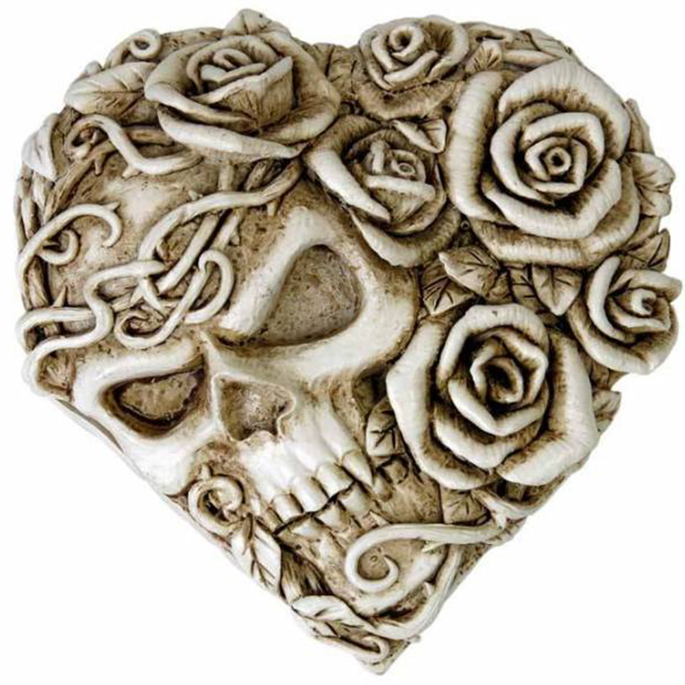 • Thought shines eternally bright whilst the ephemeral body whither as fallen fruit in the ground. • A beautifully dark skull shaped tea light holder. • High quality resin hand finished in antique...