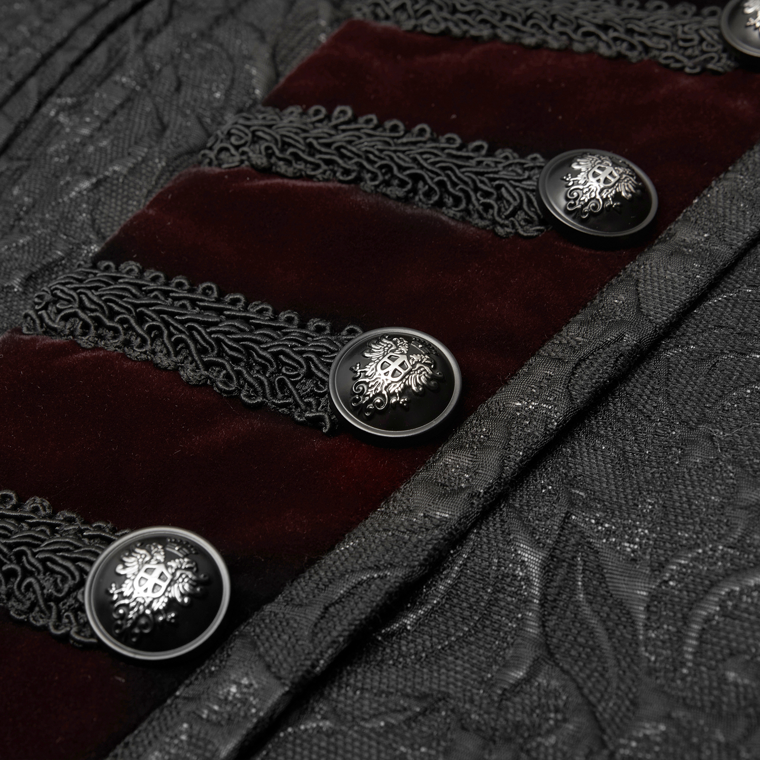 Black brocade jacquard and burgundy velvet victorian waistcoat