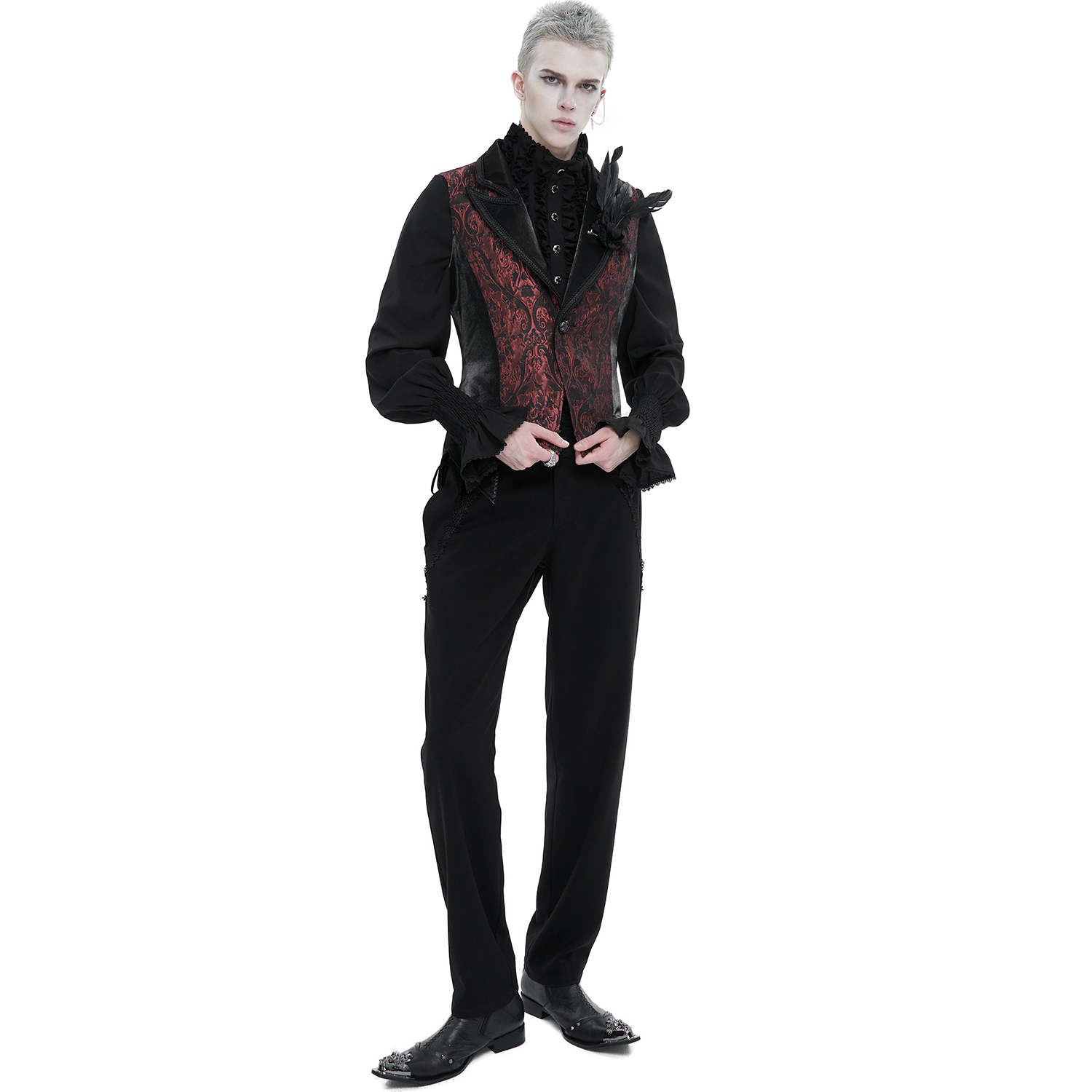 • Made from premium jacquard • Diagonal button closure at the front • Left lapel in a batwing shape • Removable cross and feather brooch on the right lapel • Decorative metal chains • Two...