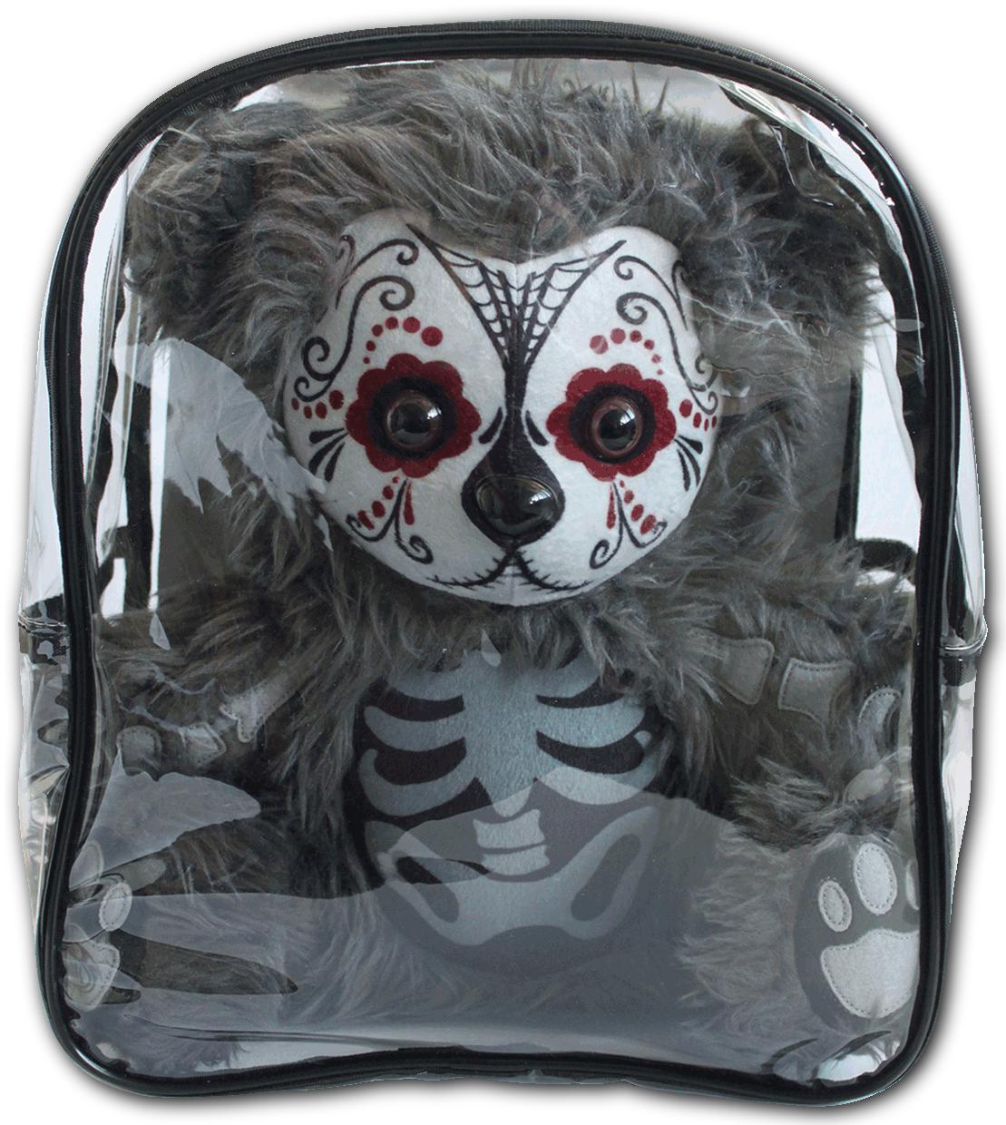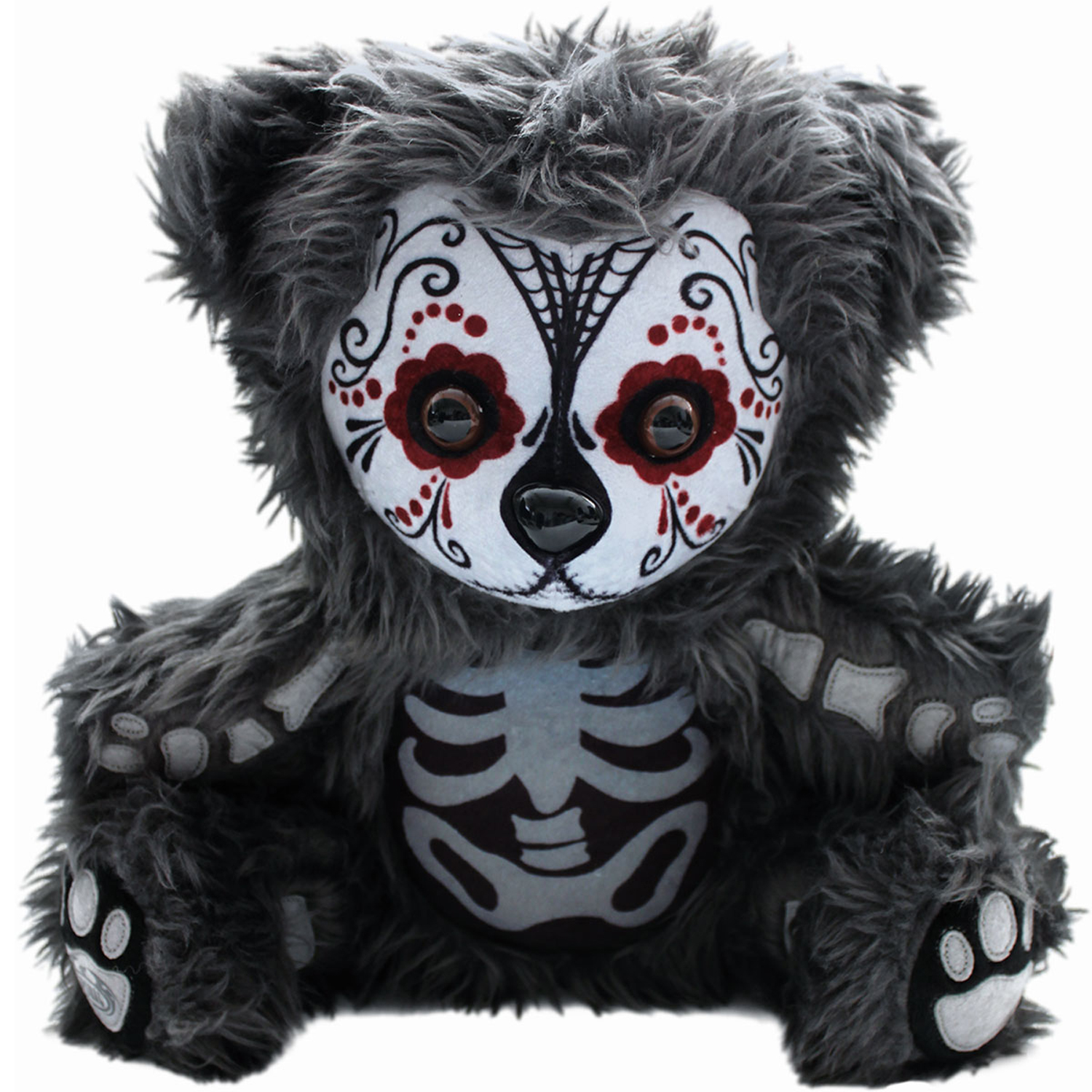 • Ce magnifique ours en peluche est décoré d'un crâne en sucre effrayant et de formes squelettiques dans sa fourrure pour commémorer le Dia de Los Muertos!