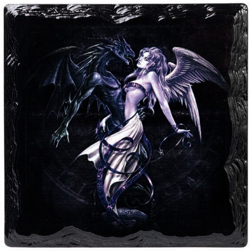 • L'œuvre d'art classique 'Mariage chimique' est maintenant représentée sur un magnifique sous-verre de style ardoise.