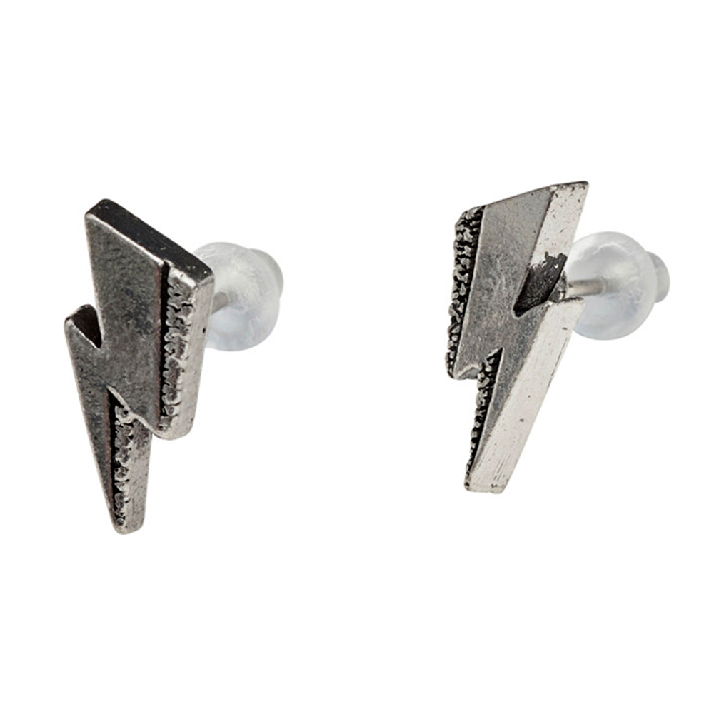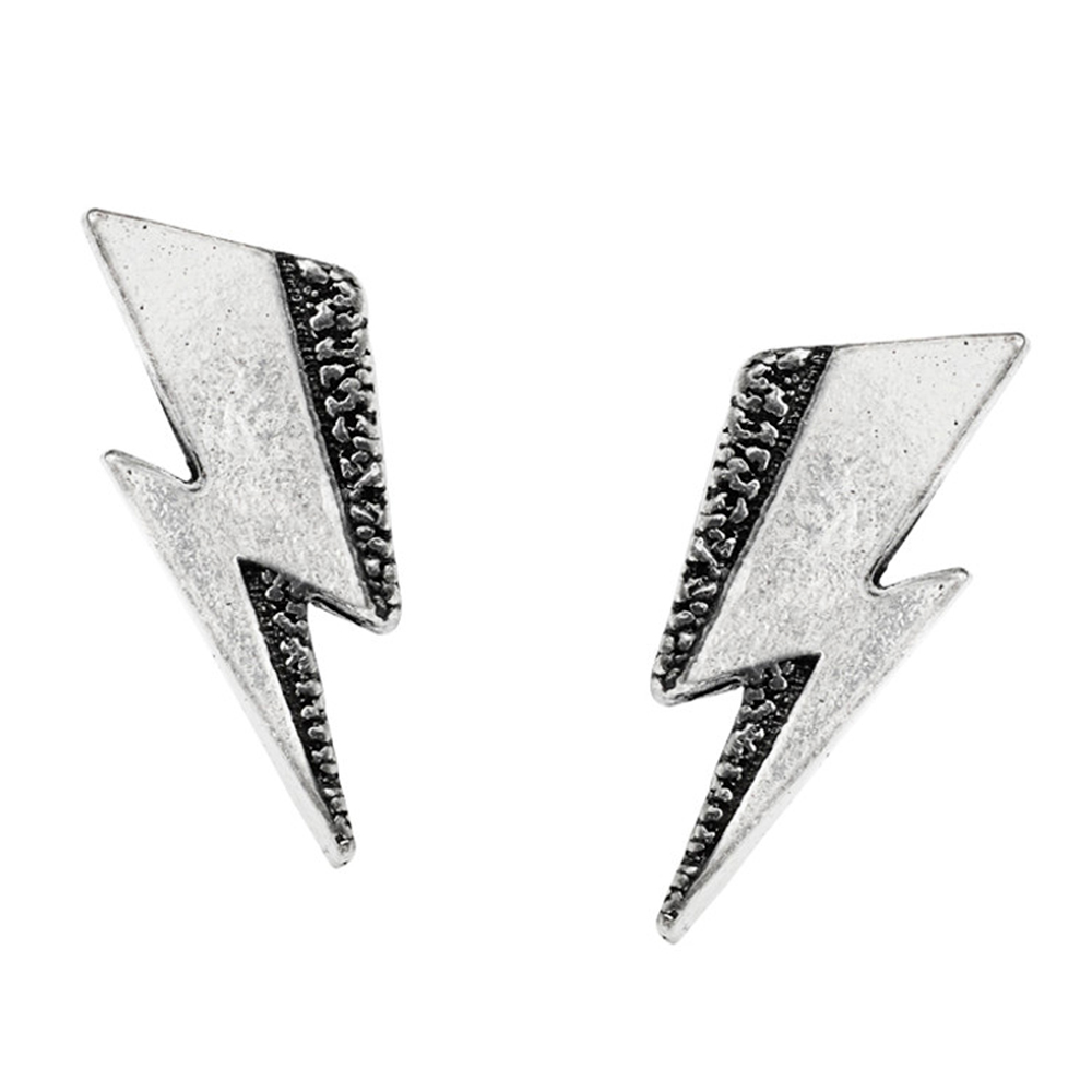 • Une paire de clous d'oreilles sculptés en 3D en forme d'éclair stylisé ; Boucles d'oreilles anglaises en étain.