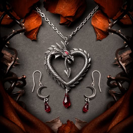 Les crânes flanquants trahissent une romance sombre et delphique du cœur entre deux créatures étranges et exotiques. • Une paire de boucles d'oreilles compte-gouttes en étain avec un cœur bombé...