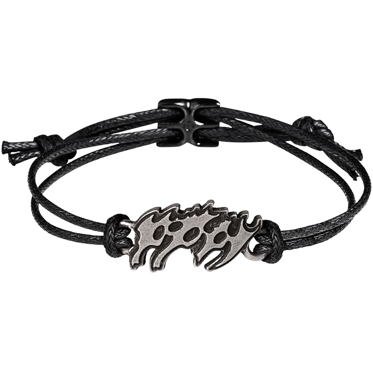 • Monté sur un bracelet en cordon noir réglable avec une fermeture sécurisée en étain noirci, ce bracelet allie audace et confort.