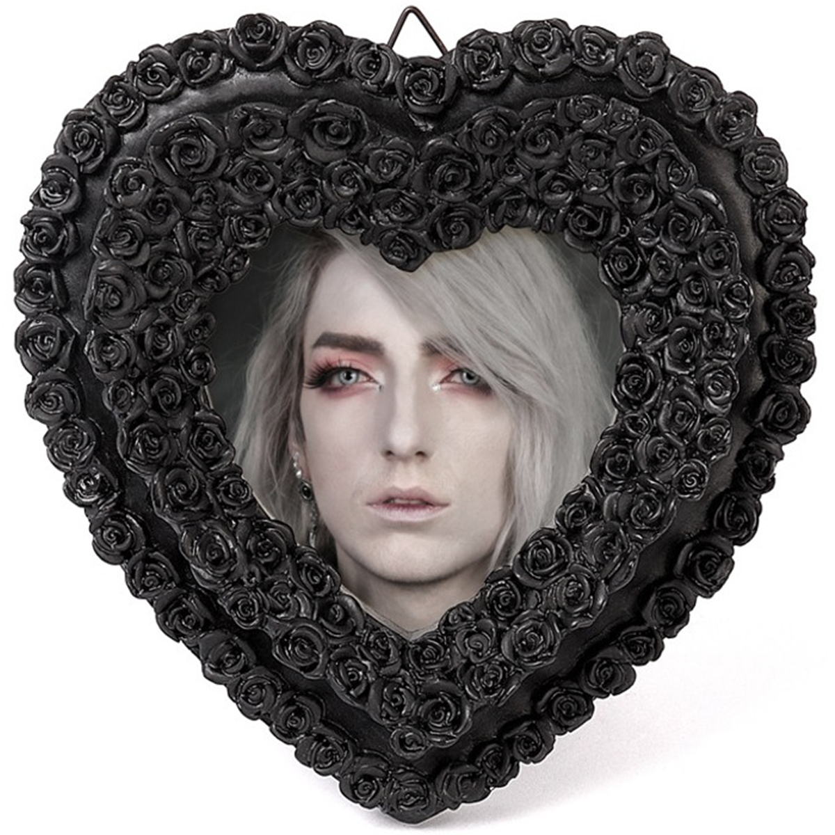 De minuscules roses noires forment une forme de cœur pour afficher une photo de votre bien-aimé.
