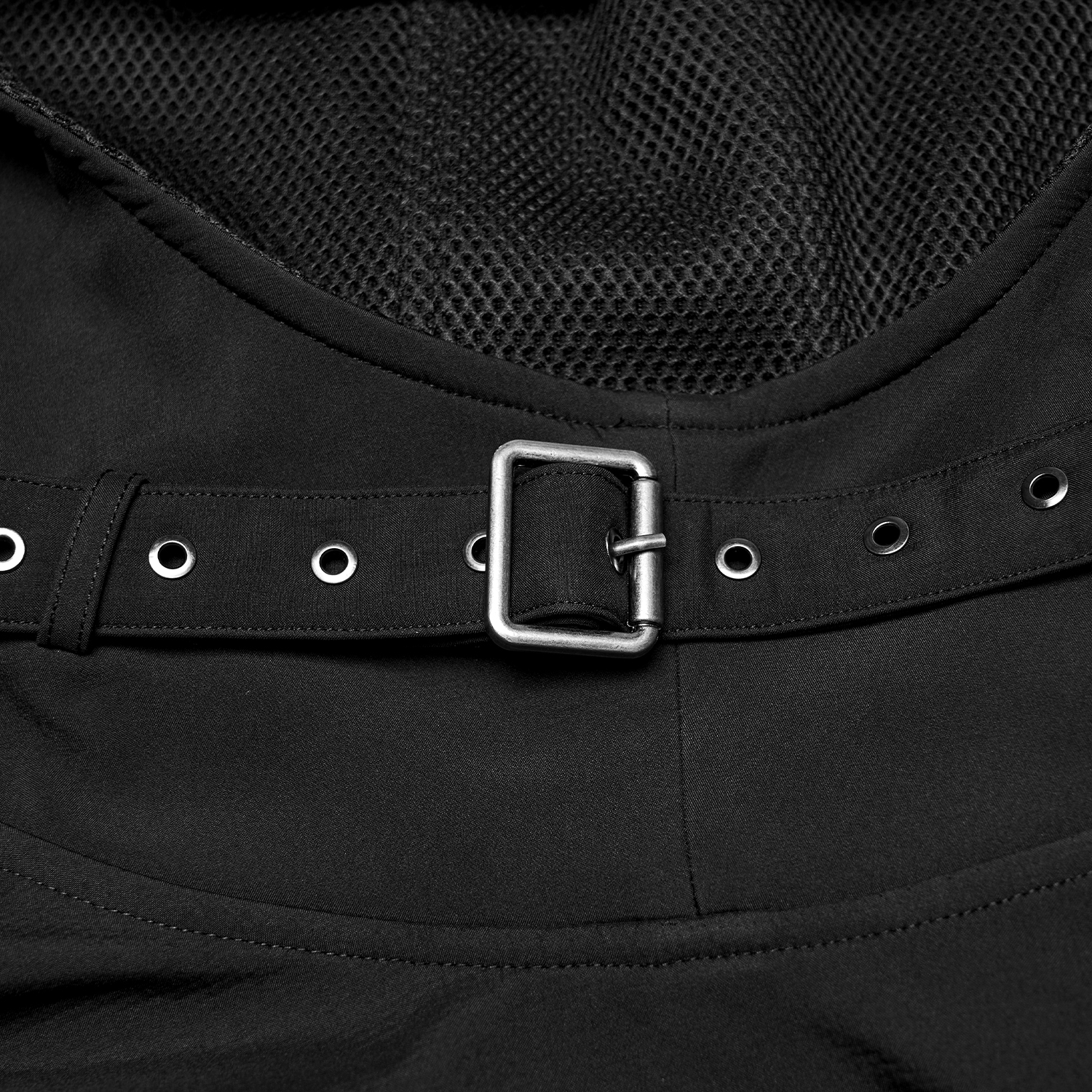 • Capuche oversize • Se ferme par une boucle avec rivets en forme de crânes • Laçages en cuir végan avec œillets sur sangles en similicuir aux épaules • Lanières en cuir végan autour de la...