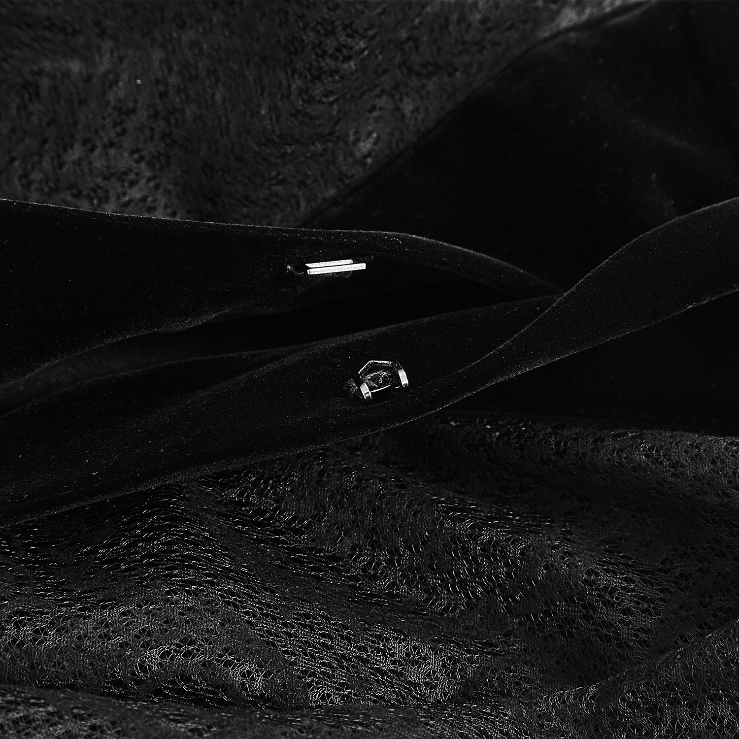 • En velours dense et de qualité • Col chauve-souris • Les coutures des épaules et du col sont ornées de dentelle et de clous pyramidaux exquis, offrant des détails riches • Panneau en dentelle...