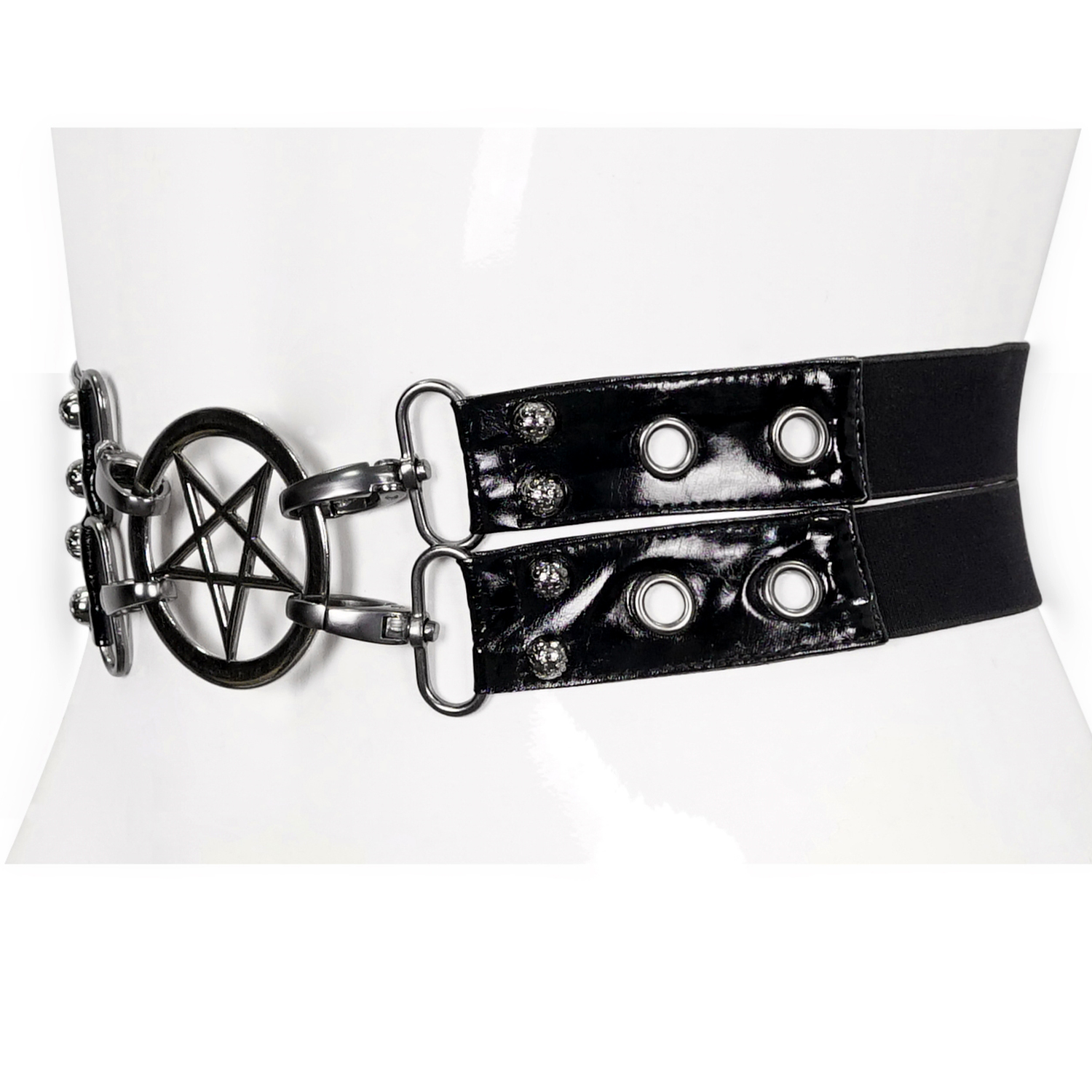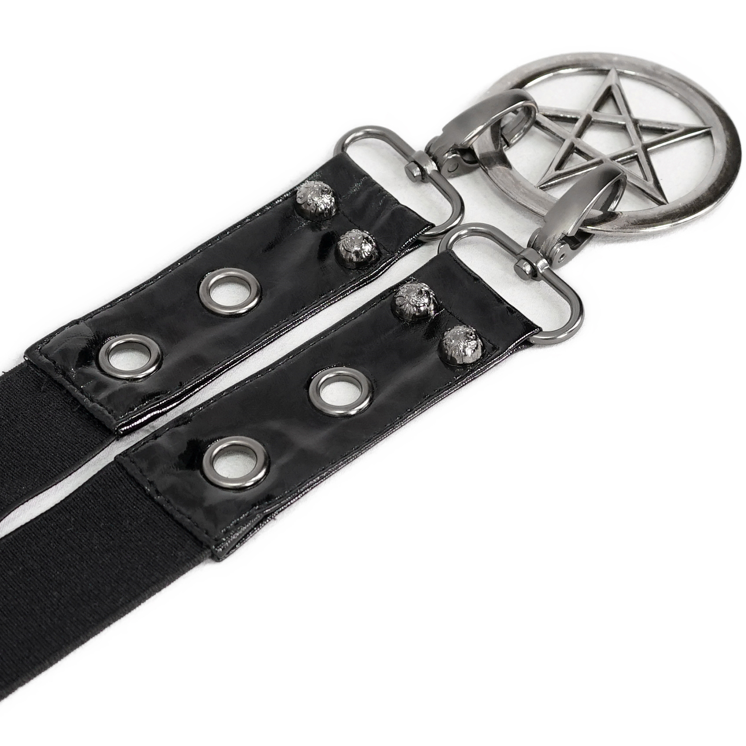 • Ceinture gothique élastique noire • Grand pentagramme métallique • Bretelles élastique réglables au dos, avec extrémités vernies • Avec œillets et rivets • Également disponible pour hommes • 100%...