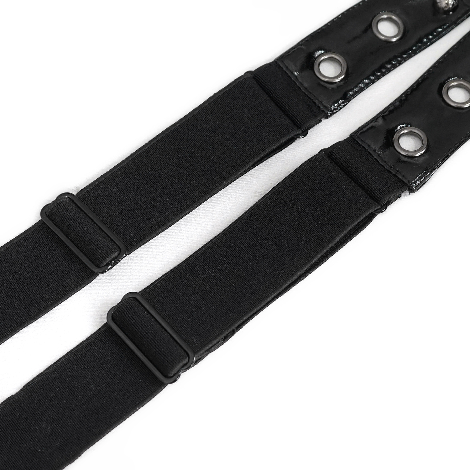 • En simili cuir verni • Bretelles à boucles réglables et amovibles • Large ceinture avec double boucle • Laçage dans le dos • 55% Polyester, 45% Simili Cuir verni By Punk Rave GUIDE DES TAILLES...