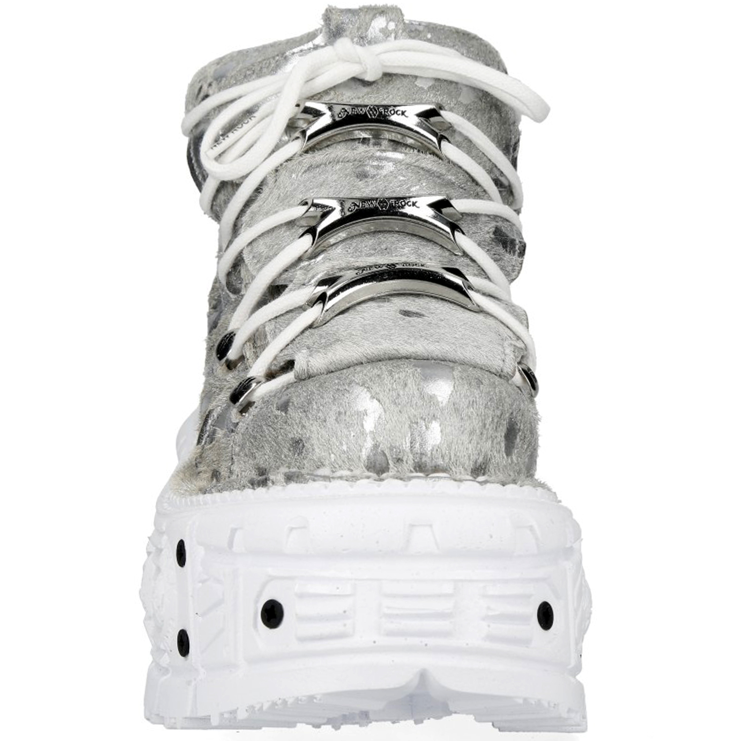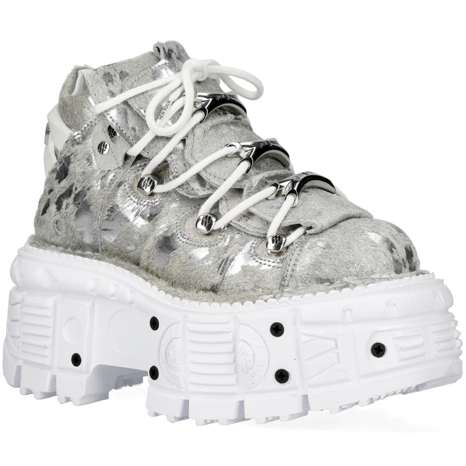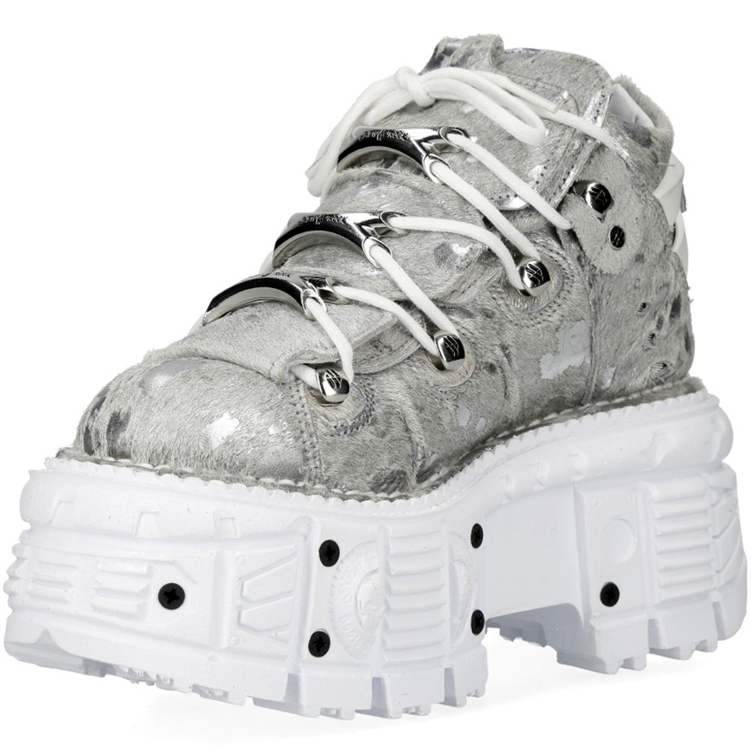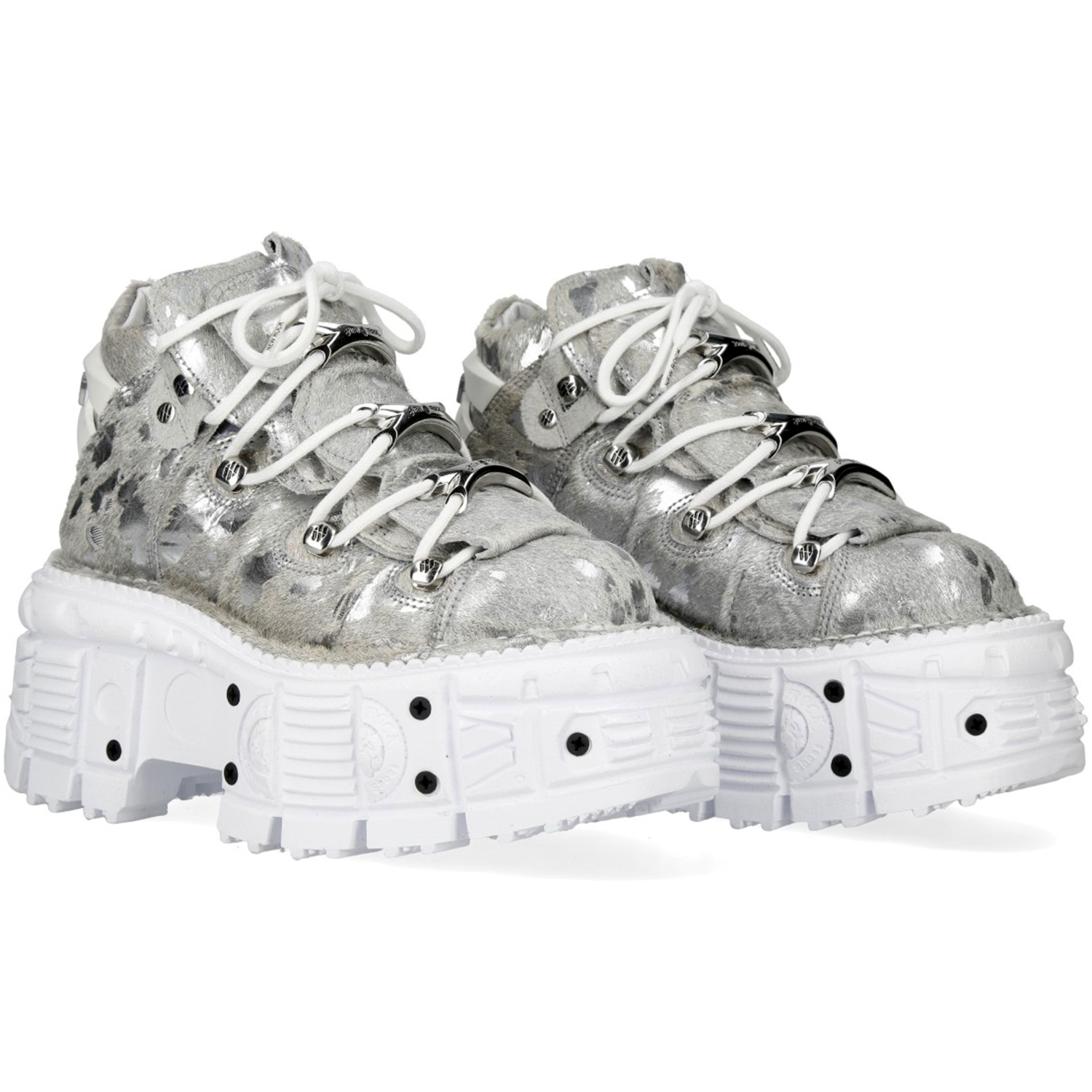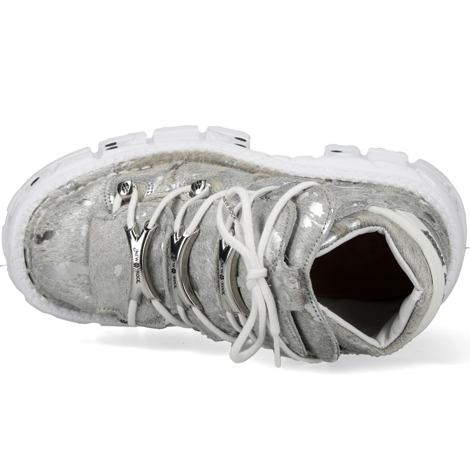Chaussures New Rock Tank en Fourrure Argentée et Blanches