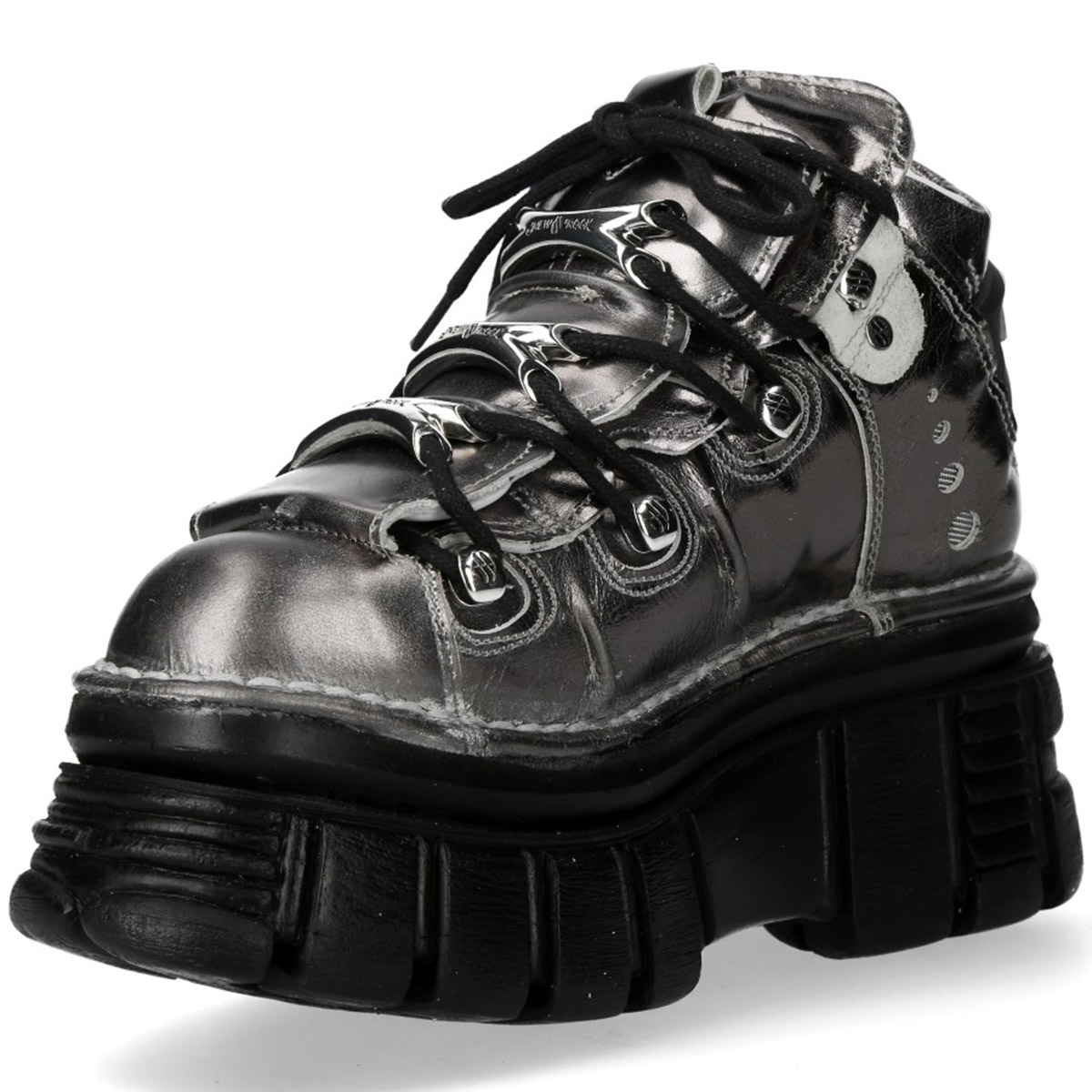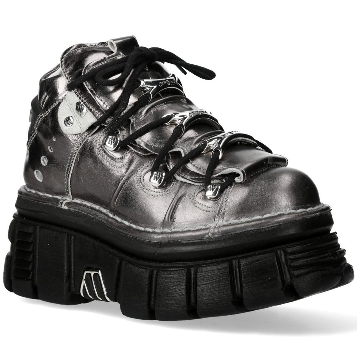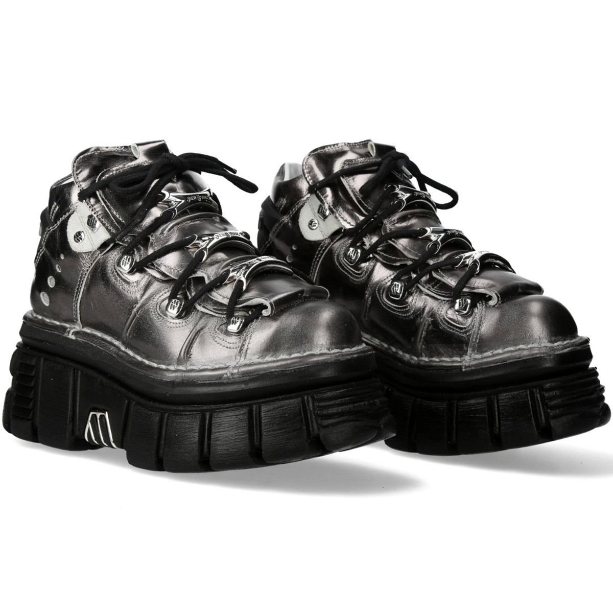 • Chaussures New Rock Metallic en Cuir Argenté
