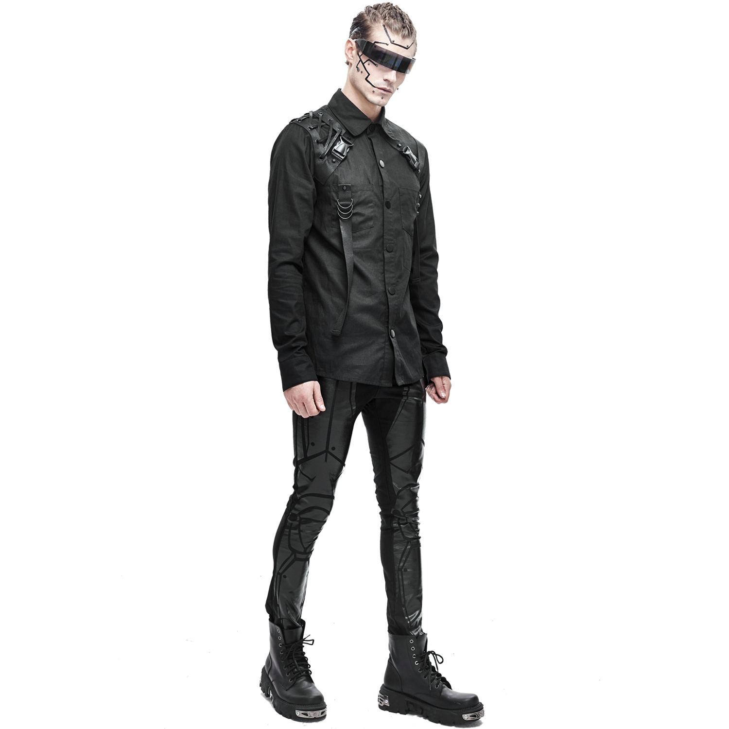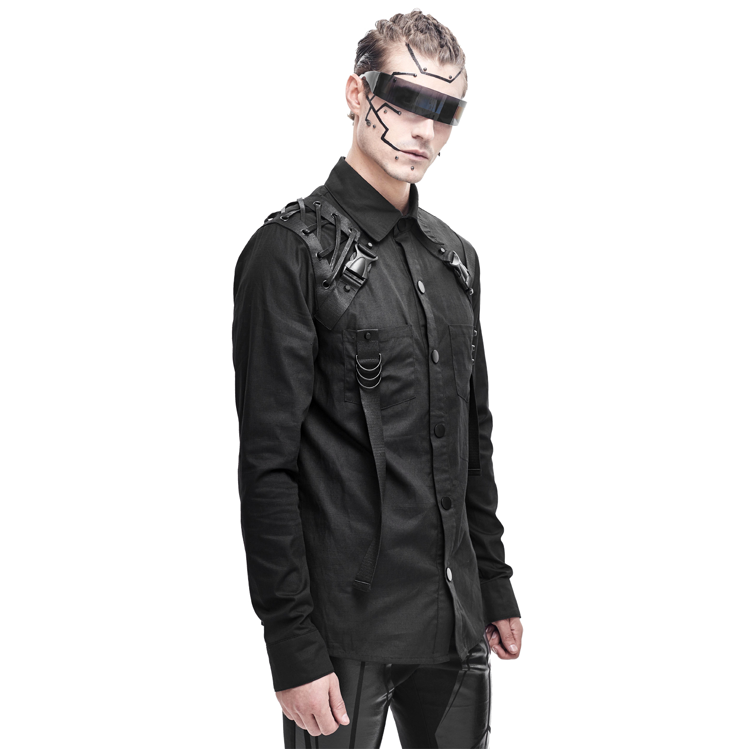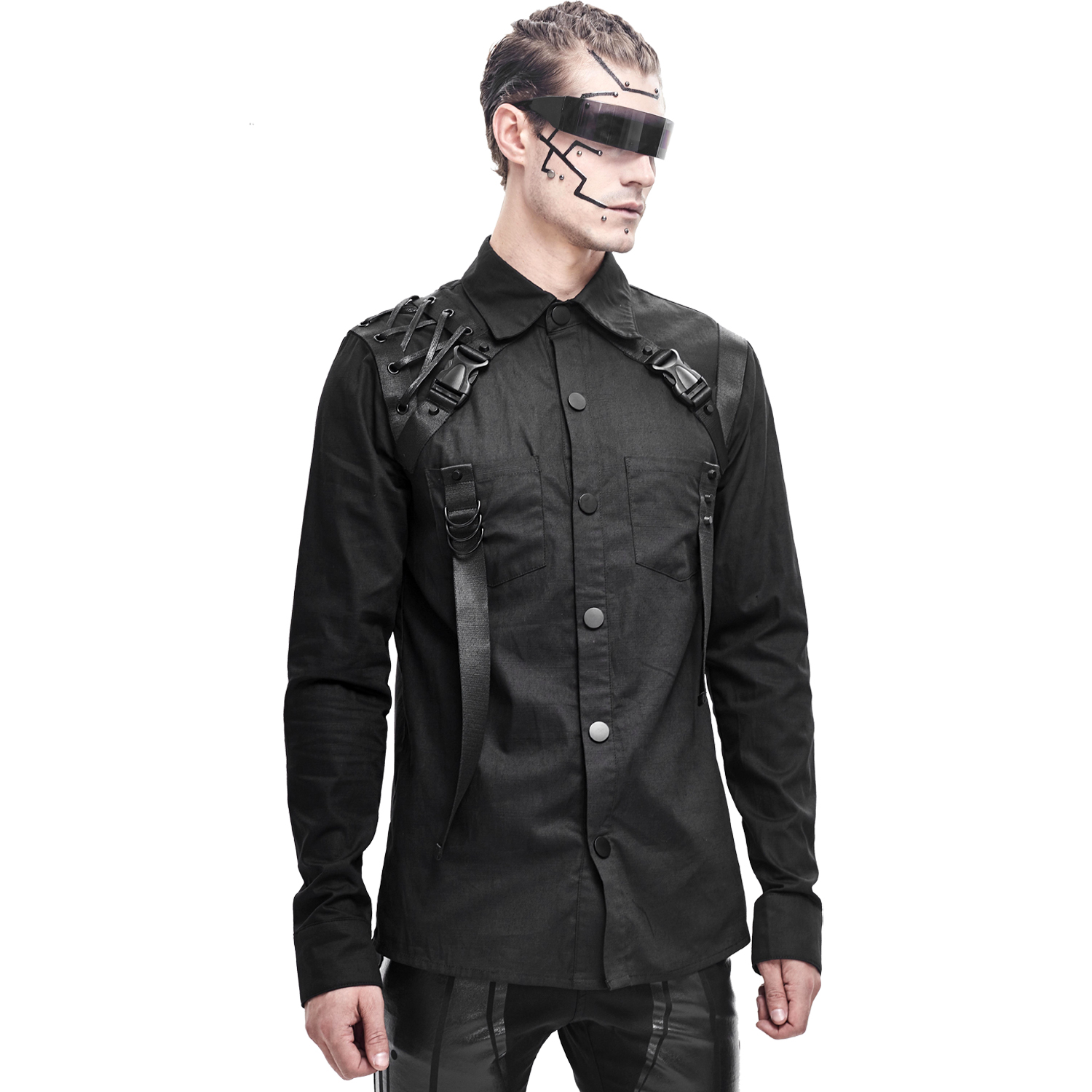 Chemise homme cyberpunk dark à manches longues avec sangles