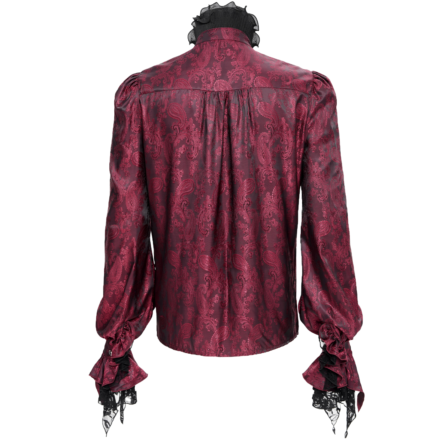 Chemise à jabot de style gothique pour hommes • En jacquard blanc • Poignets fermés par deux boutons métalliques • Col haut bordé de dentelle à volants • Cravate amovible • 96% Coton, 4% Élasthanne...