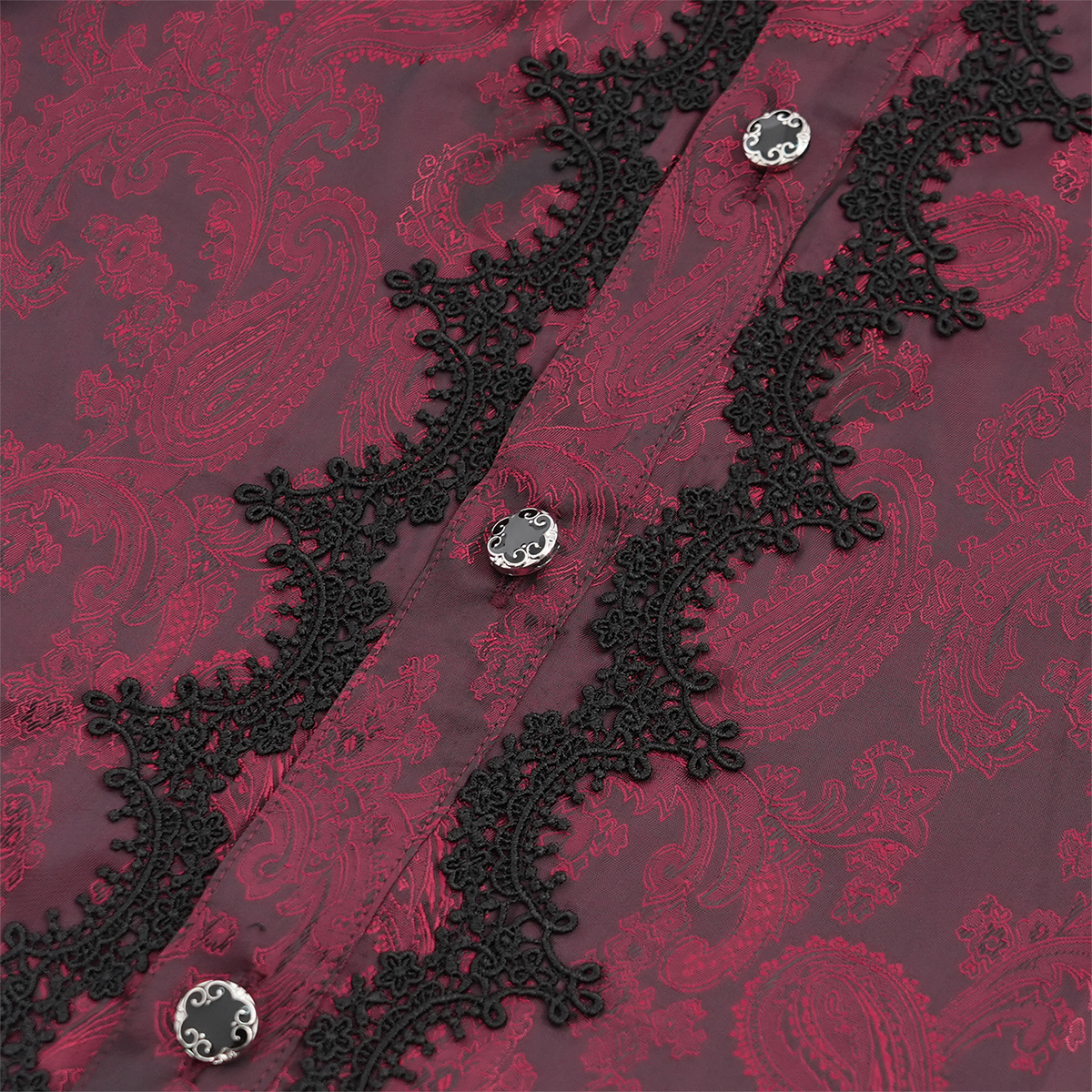• Chemise gothique à manches longues pour hommes • En polyester noir doux, léger et semi-transparent • Dentelle noire à volants • Fermeture sur le devant par boutons personnalisés • Col...