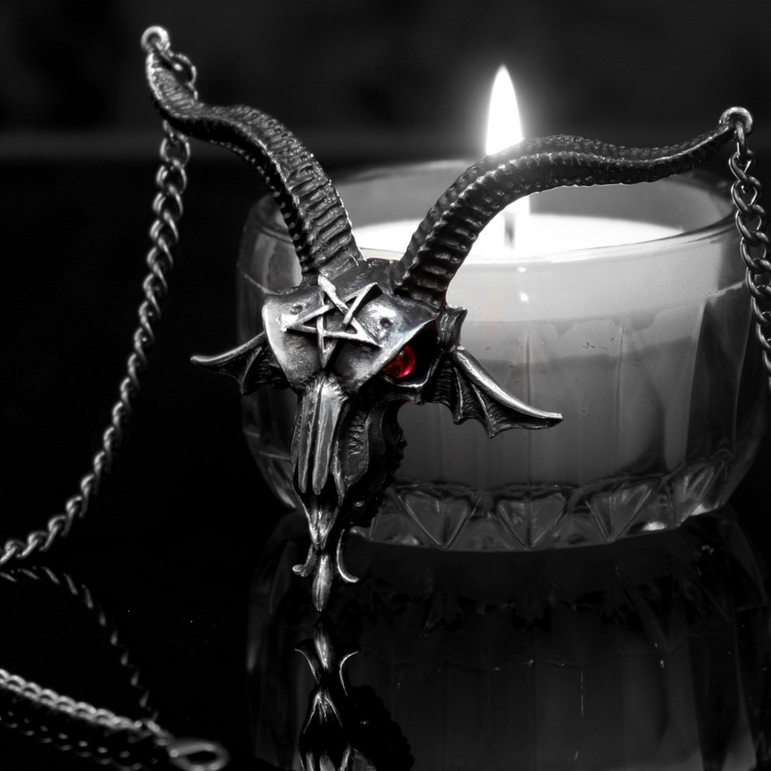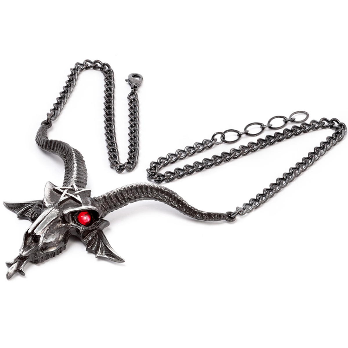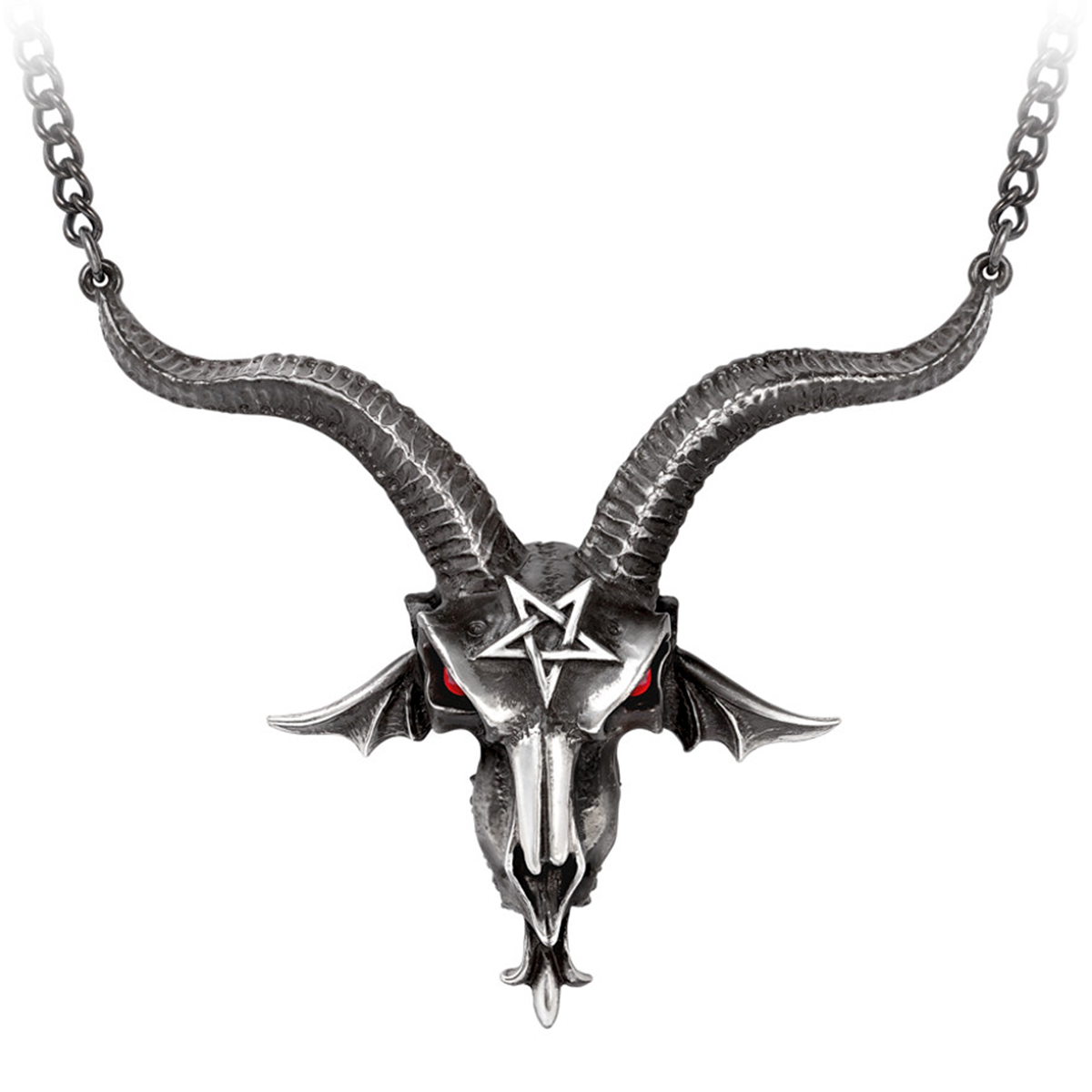 • Un grand collier Baphomet Skull avec des yeux en cristal rouge.