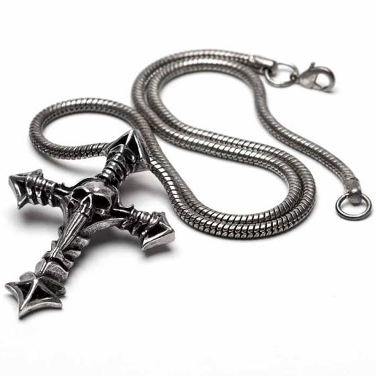 • Sculpté à la main d'une croix en métal d'étain massif avec des vertèbres et un demi-crâne.