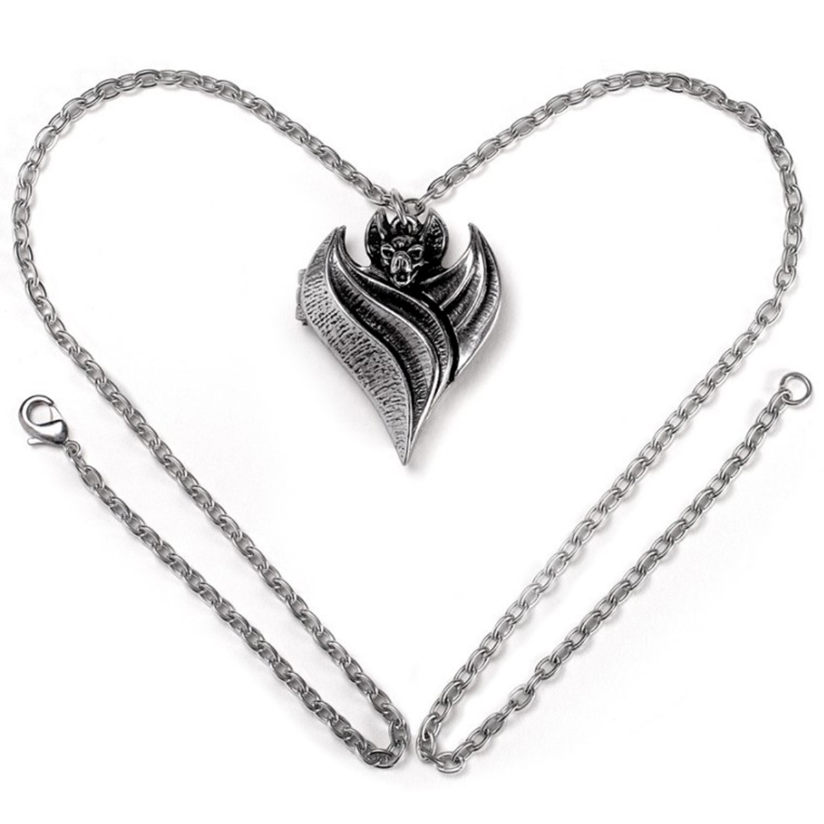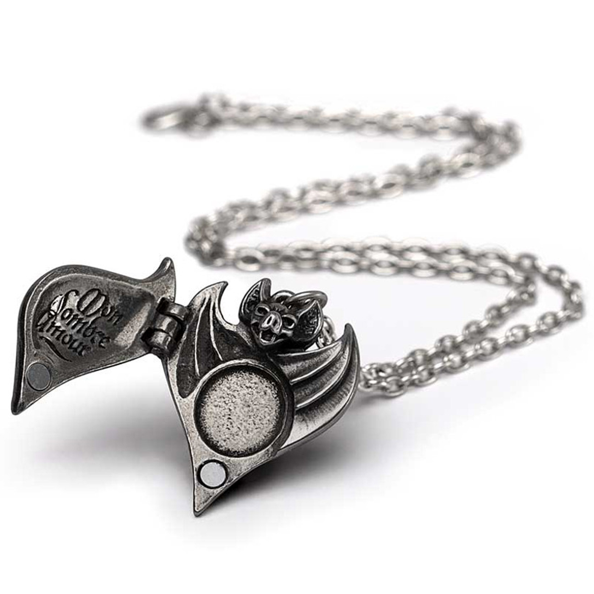 • Un médaillon chauve-souris en forme de cœur. Soulevez délicatement l'aile pour révéler une place discrète pour votre proche.
