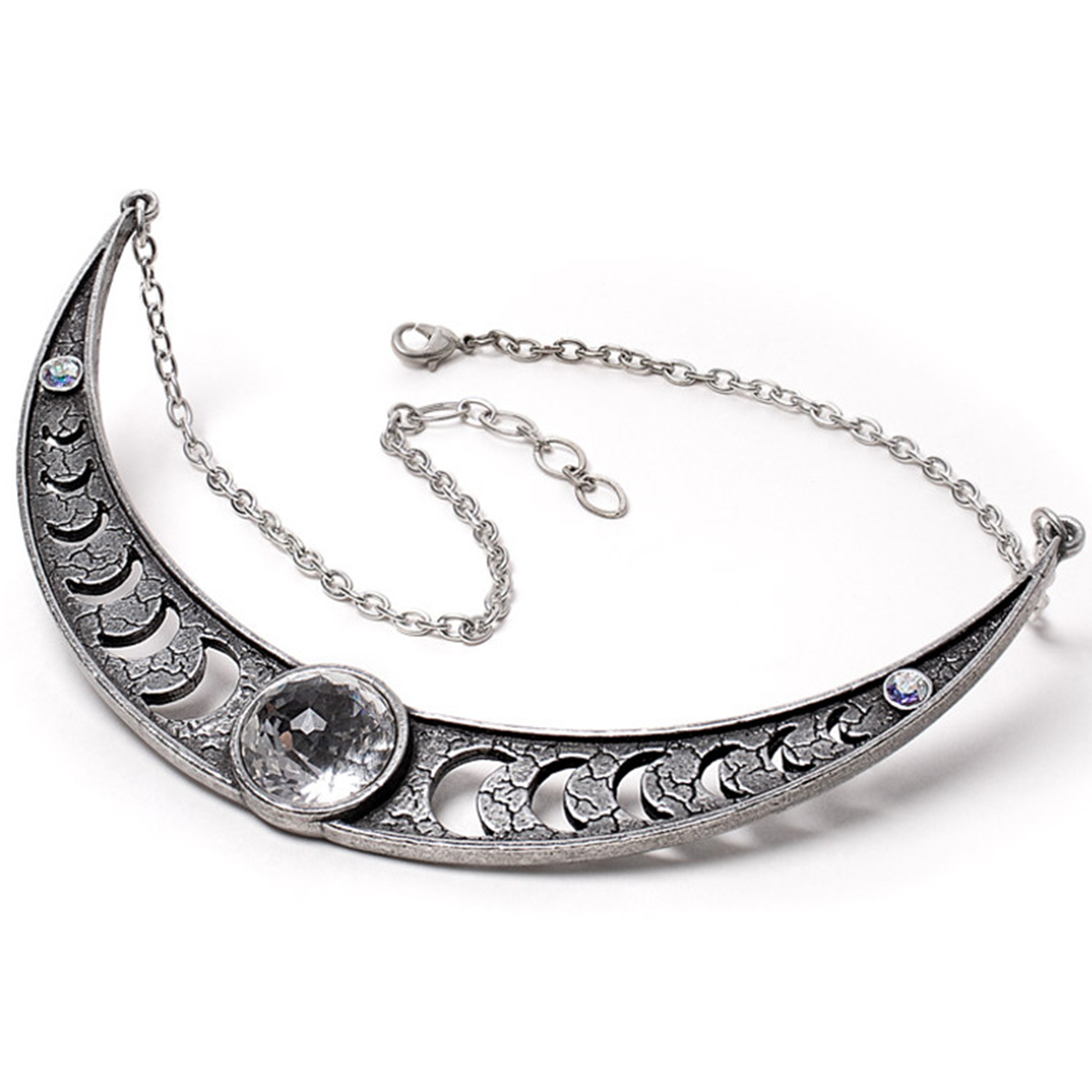 • Un collier tendance en forme de croissant de lune, décoré de phases de lune et orné de cristaux mystiques taillés en Autriche !