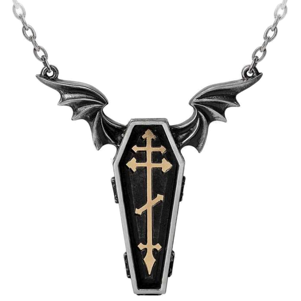• L'écusson est dramatique sur le couvercle du cercueil, en souvenir grave de la beauté éternellement existante si chère au comte Magistus revenant. • Présentation du pendentif 'Cross of the Dark...