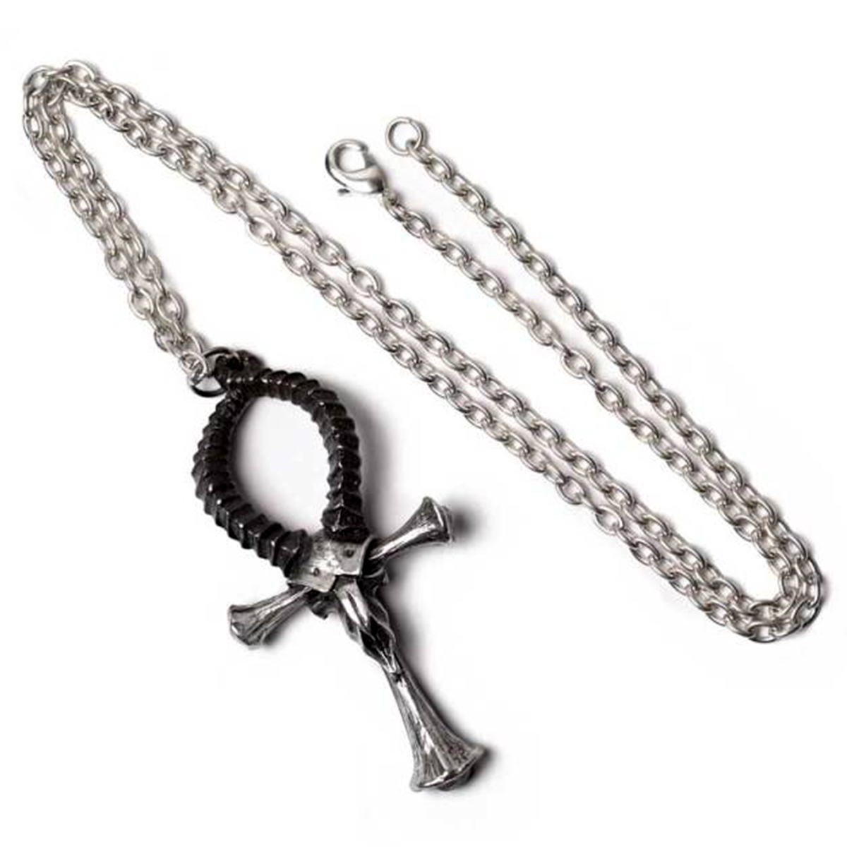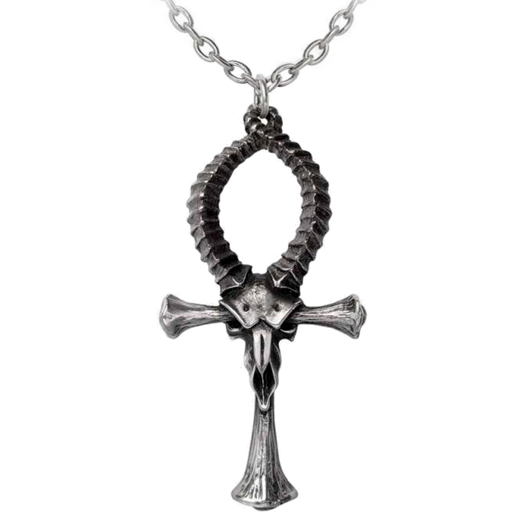 • Ce n'est pas seulement un pendentif, c'est une déclaration. Orné d'os magnifiquement sculptés et d'un formidable crâne de bélier, l'Ankh arbore des cornes torsadées noircies, incarnant la puissante dualité de la férocité et de la fertilité.
