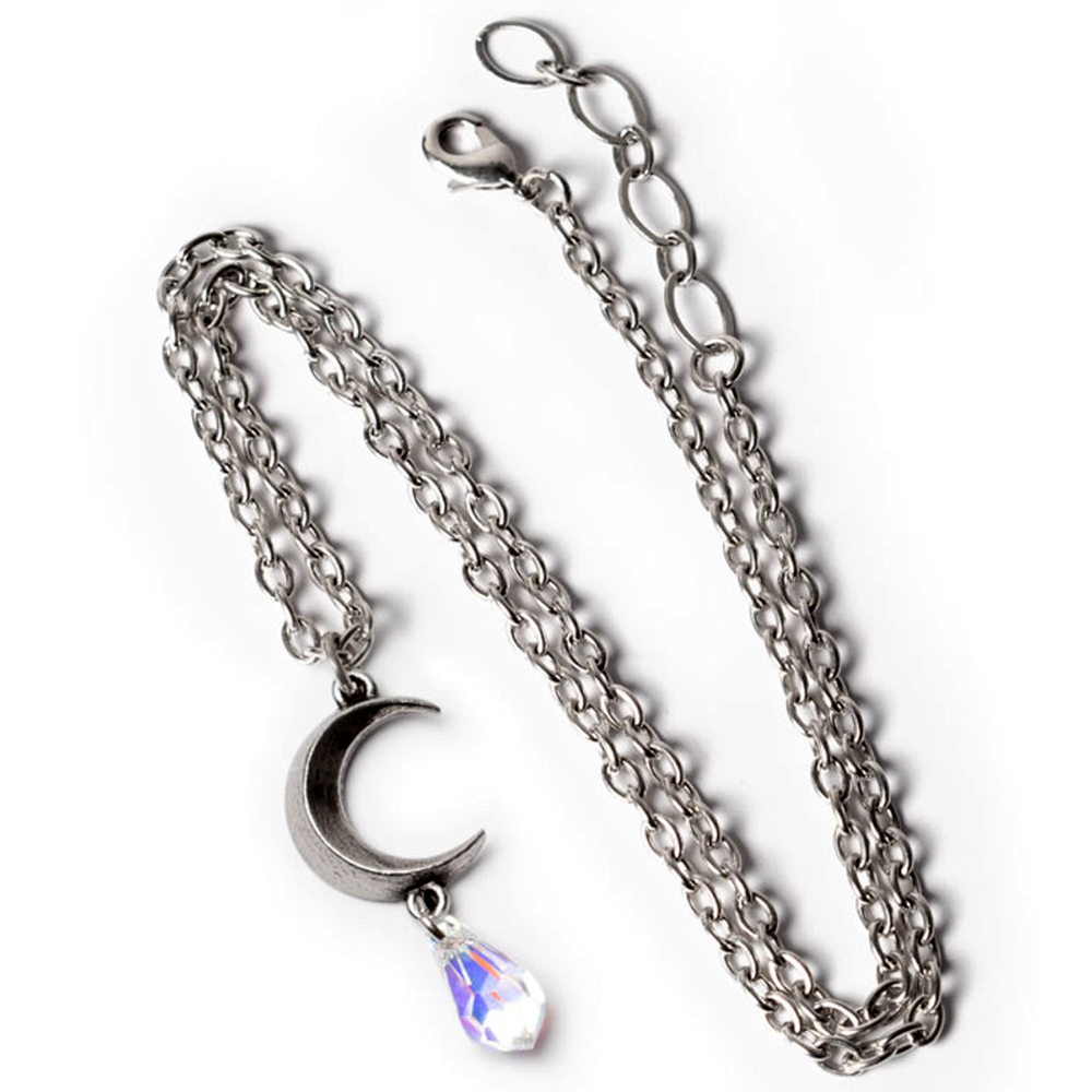 • Orné d’une lune en étain faite main et d’une délicate goutte en cristal autrichien noir.