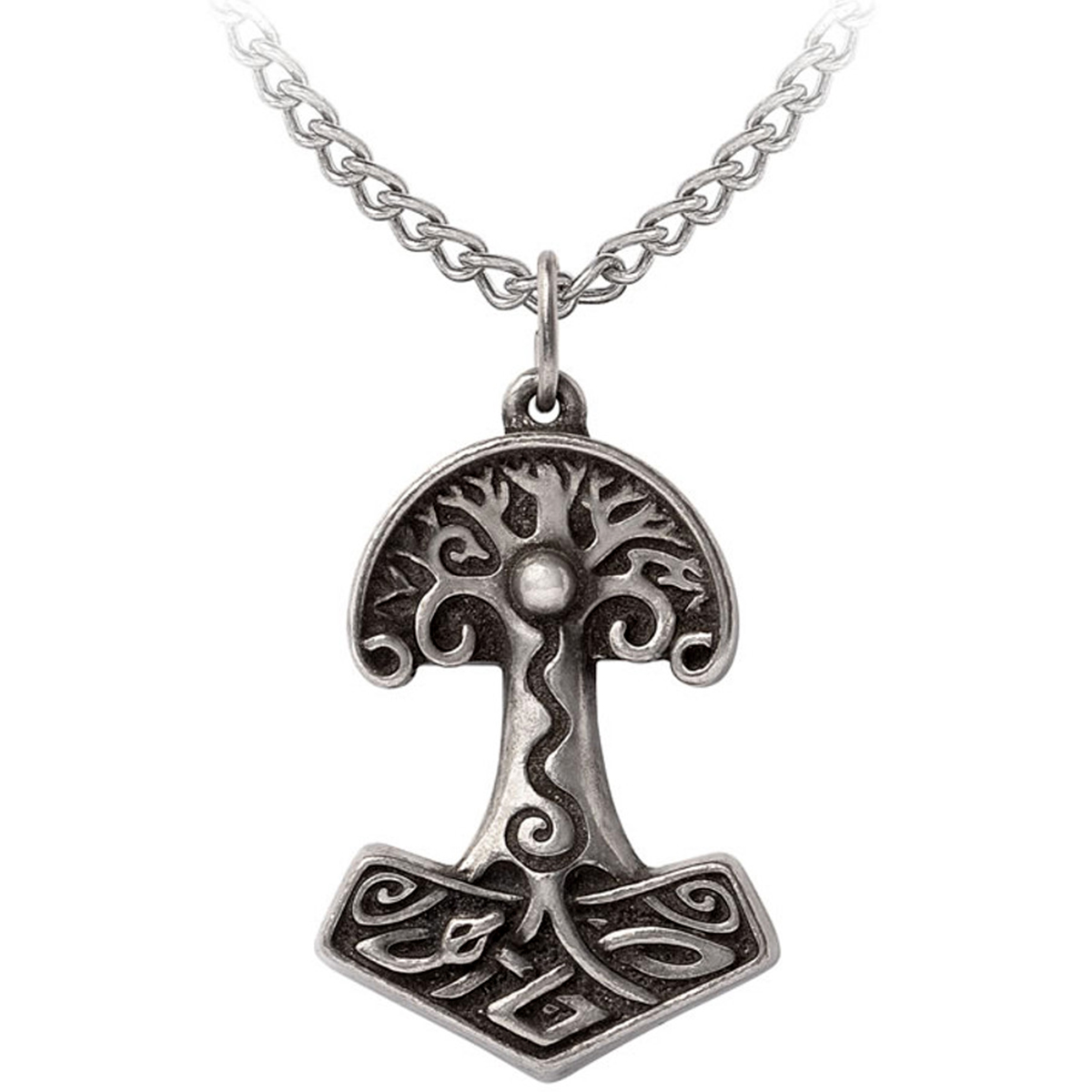 • Fabriqué à la main en étain anglais de haute qualité, ce pendentif massif en forme de marteau, de style viking, est orné de motifs celtiques audacieux qui capturent l'esprit de l'héritage nordique.