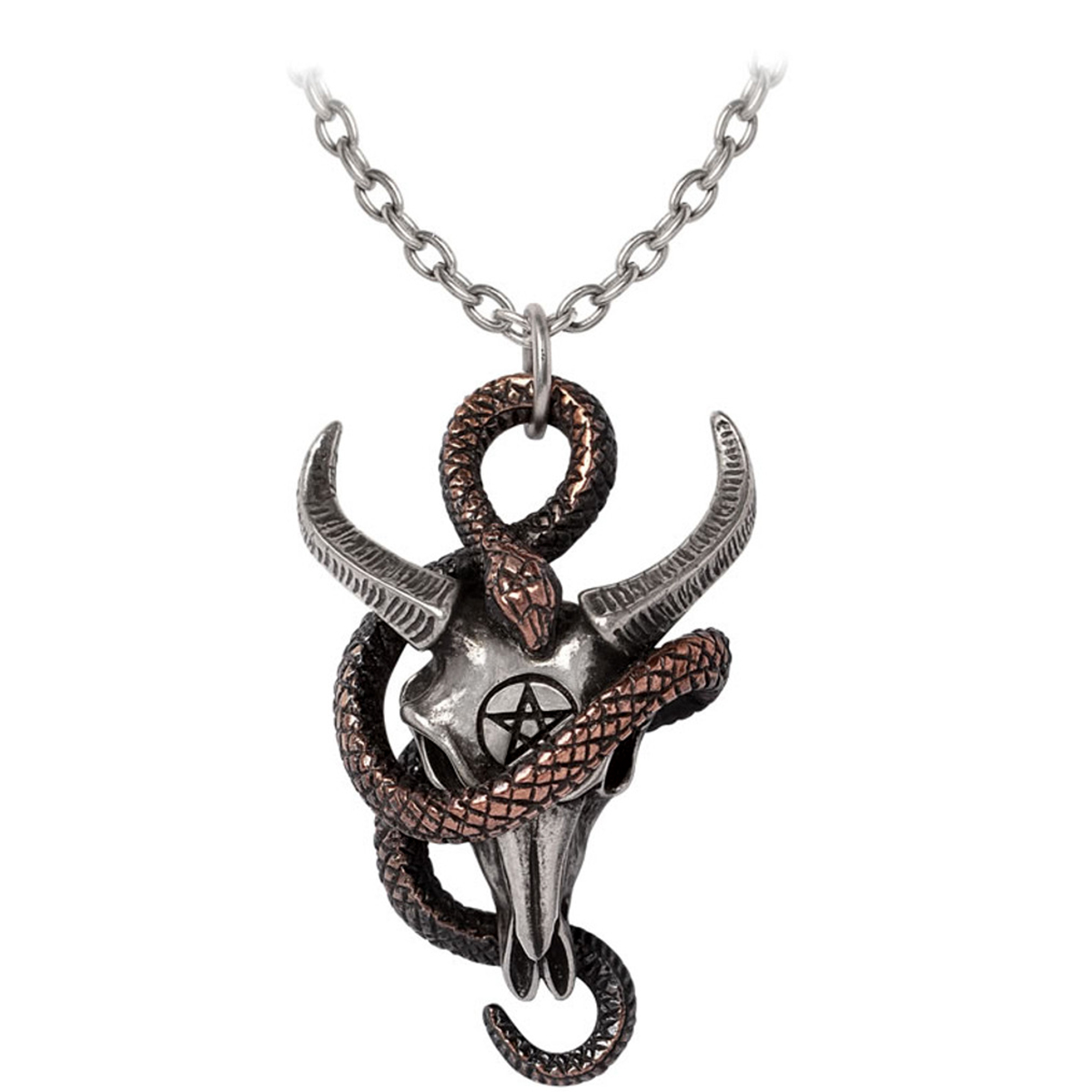• Pendentif Crâne de Bélier avec Pentagramme et Serpent Enroulé