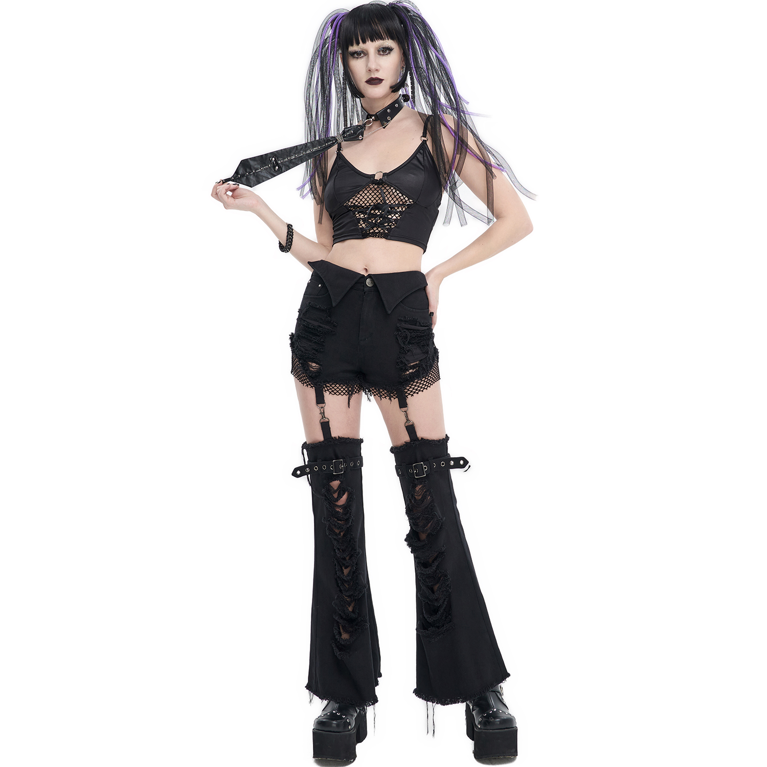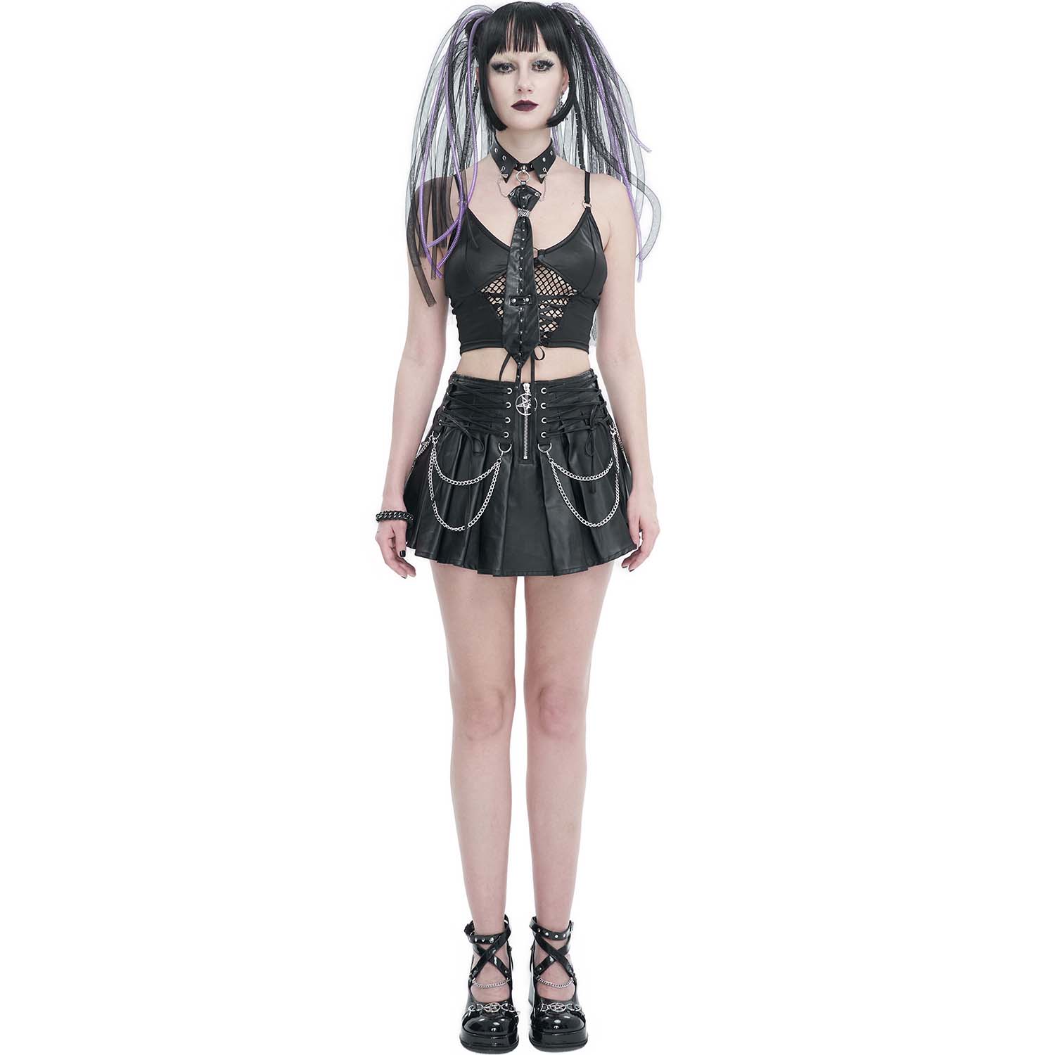 • En simili cuir • Chaînes métalliques avec œillets • Spikes coniques • Fermeture éclair cachée réglable au centre du dos. • 36% Simili Cuir, 36% Coton, 28% Polyester By Devil Fashion DIMENSIONS...