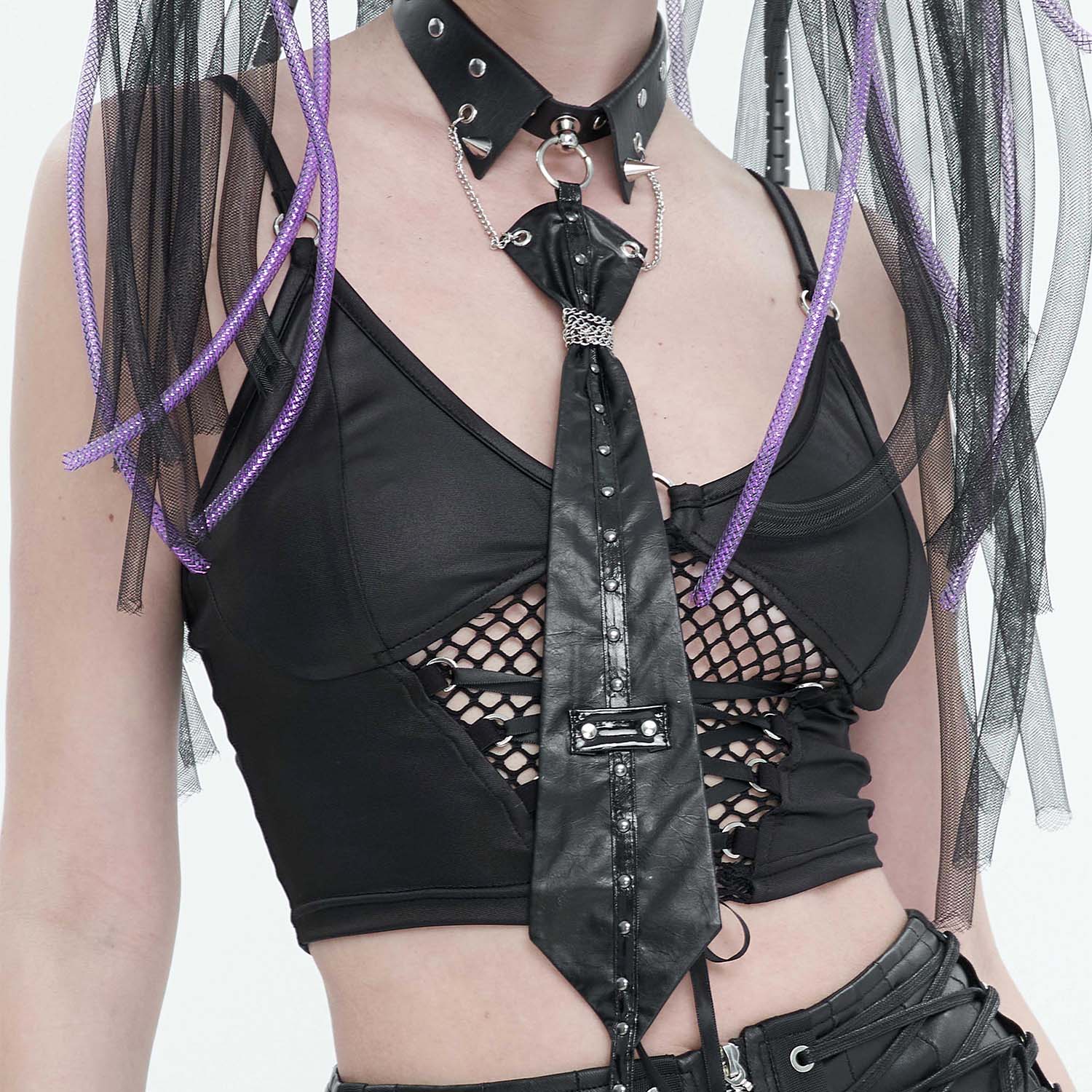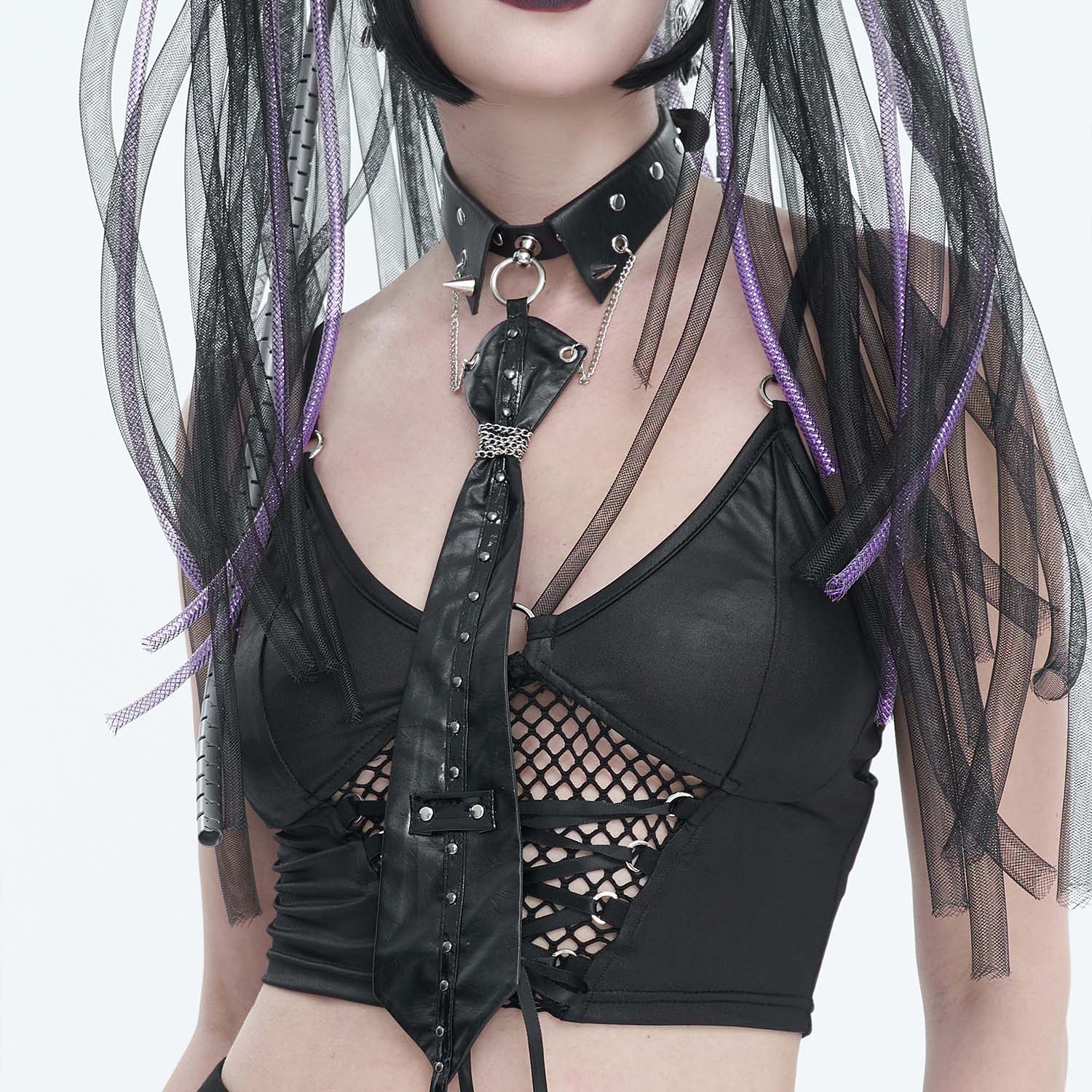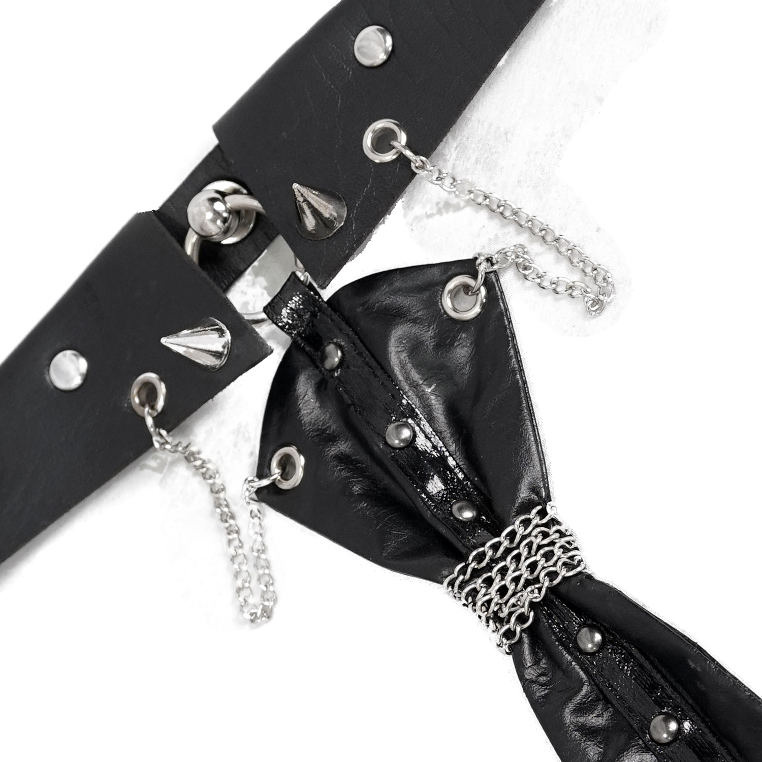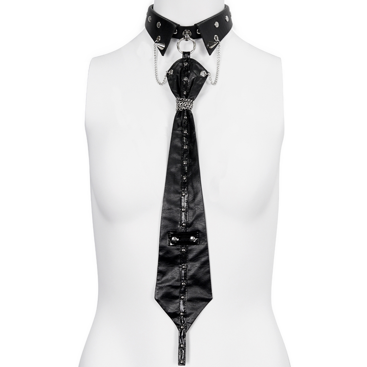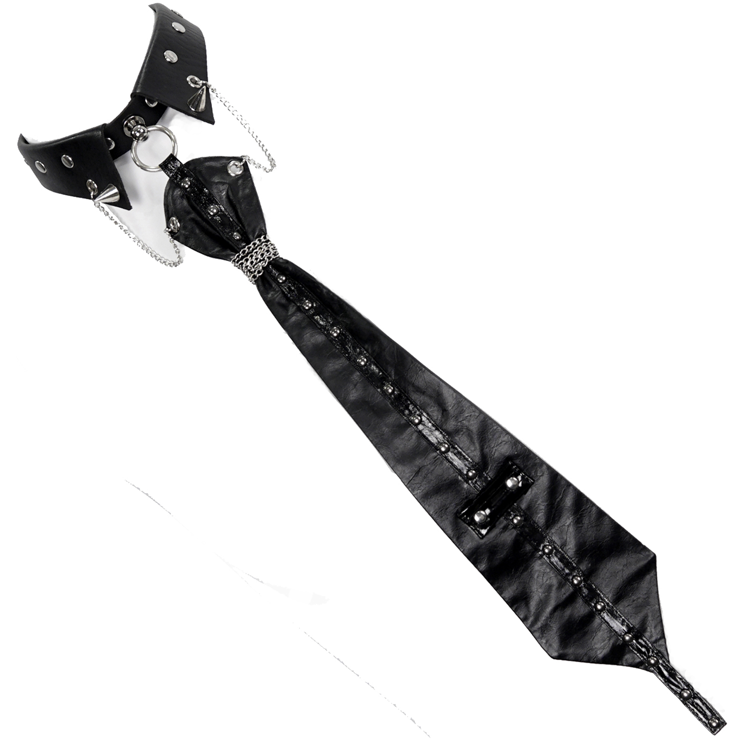 • En simili cuir épais • Conçu comme un collier réglable • Tissu caoutchouté conçu comme une cravate • Reliée par des bandes et des chaînes en cuir • 55% Simili Cuir, 45% Coton By Devil Fashion...