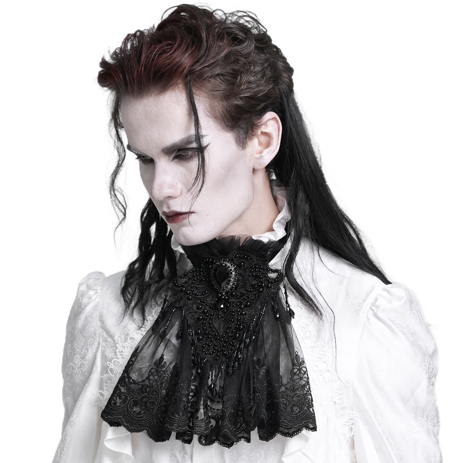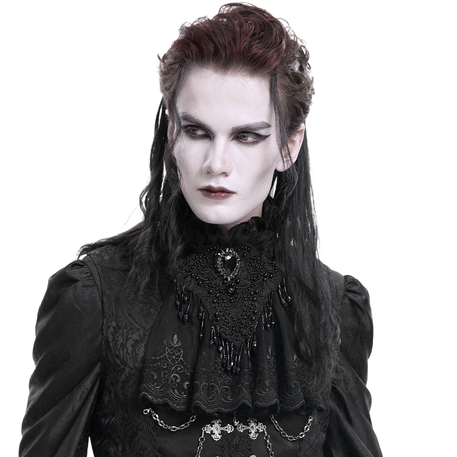 • En velours noir et bordeaux, aspect froissé • Ornée de dentelles sur toute la longueur • Petites perles noires sous le nœud • Encolure réglable • 100% Polyester By Devil Fashion...