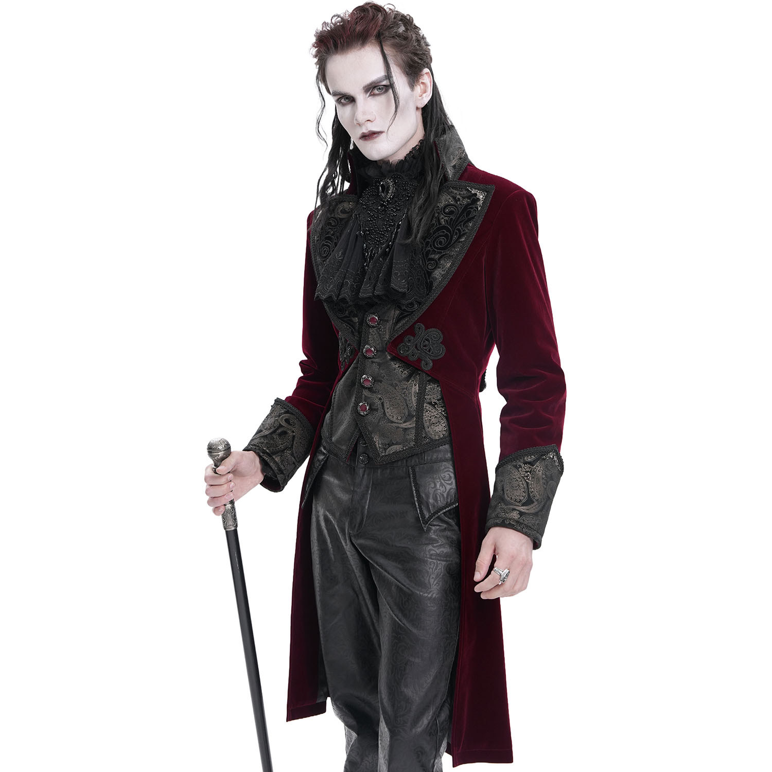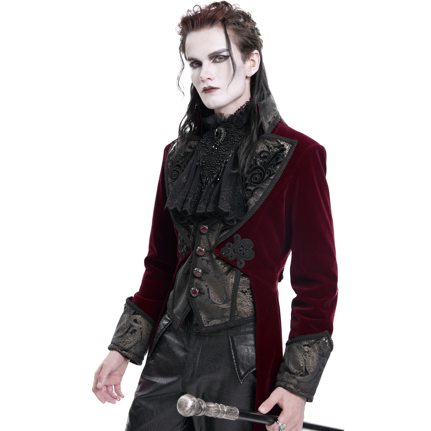 • En velours tissé non extensible • Design deux pièces en une • Col montant • Larges revers agrémentés d'un galon sur les bords et de coins métalliques • Gilet intérieur en velours gaufré • Se...