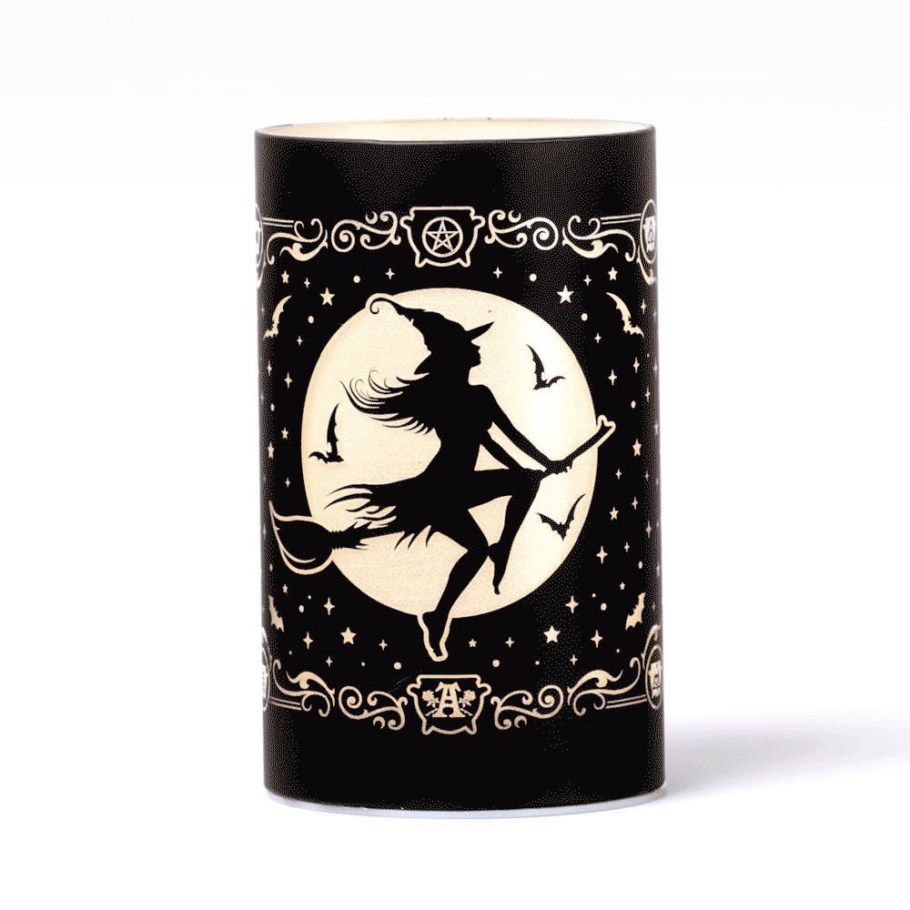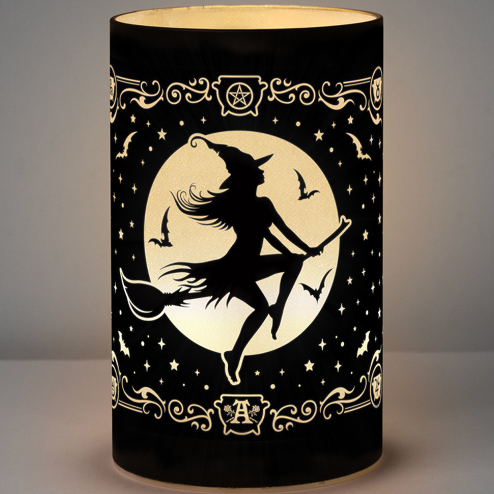 • Lorsque la lune se lève et que les étoiles s'éveillent, la Sorcière de Minuit prend son envol, glissant à travers les vents crépusculaires sur son fidèle balai. • Guidée par la lumière argentée...
