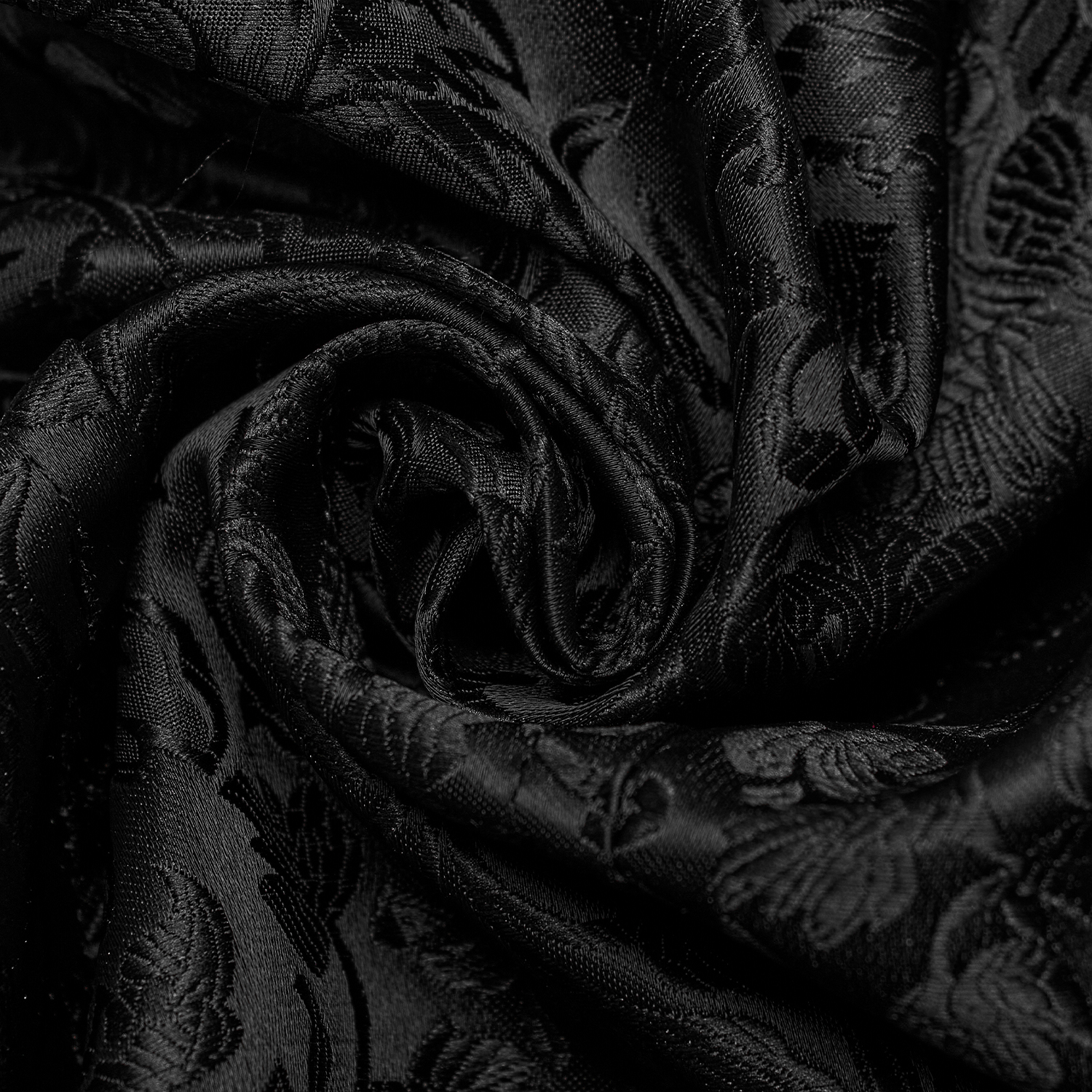 • Gilet queue-de-pie victorien en jacquard noir à revers pointus • Col orné de roses en plumes amovibles • Empiècements en satin brillant • Queue-de-pie à angles aigus • Devant et dos ornés...
