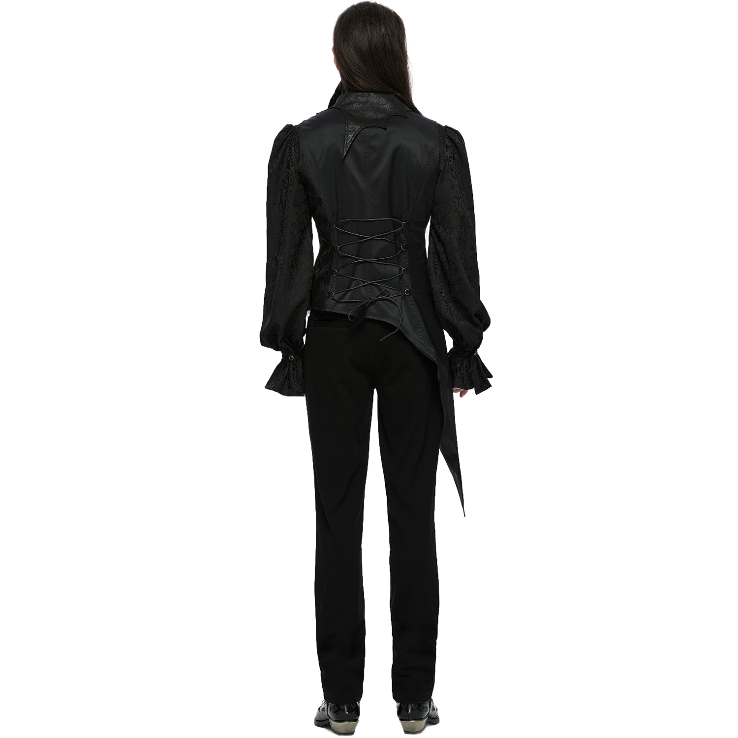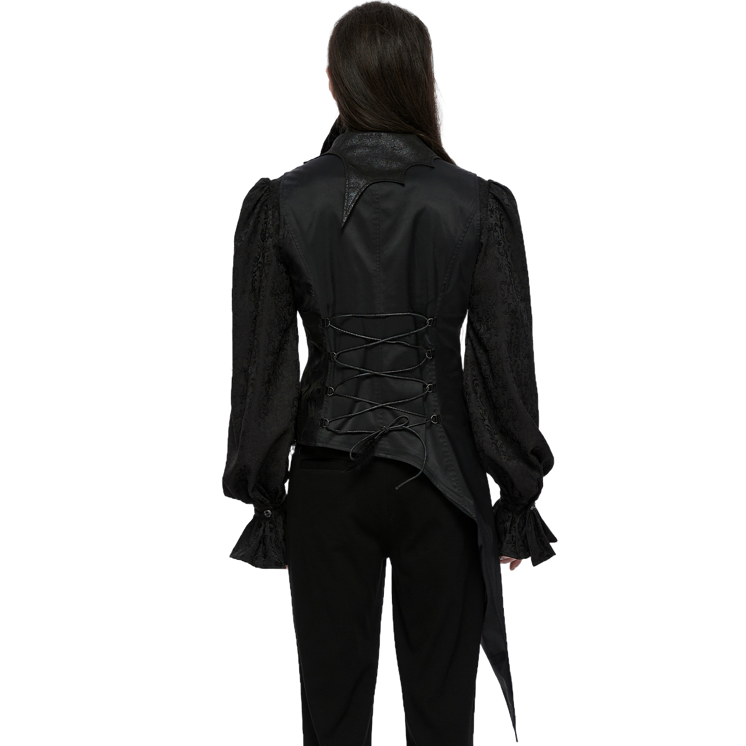 • Gilet queue-de-pie gothique en velours côtelé • Ses plis 3D discrets et luxueux lui confèrent une allure élégante • Son col en dentelle apporte une touche raffinée • Se ferme par fermeture à...