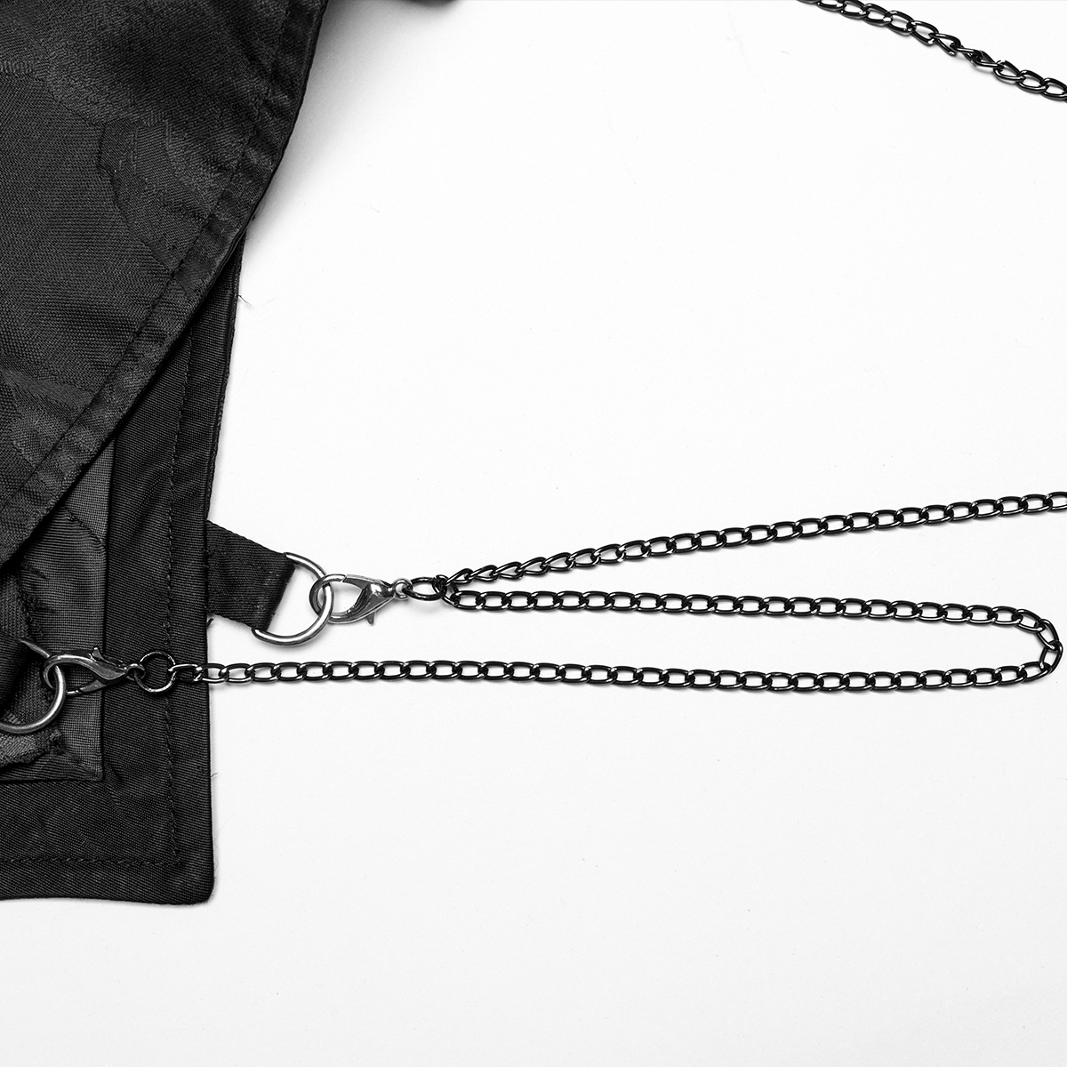 • En jacquard gothique tissé • Plastron en forme de cercueil • Dentelle délicate de chaque côté de l'encolure et du plastron • Croix métalliques cousues main • Chaînettes amovibles • Fermeture à...