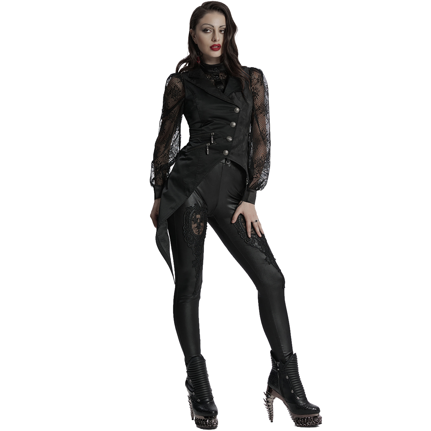 • En tissu extensible avec finition simili cuir • Appliques creuses avec dentelle brodée et résille sur le dessus des cuisses • Ceinture élastique • 90% Coton, 10% Élasthanne By Punk Rave GUIDE...