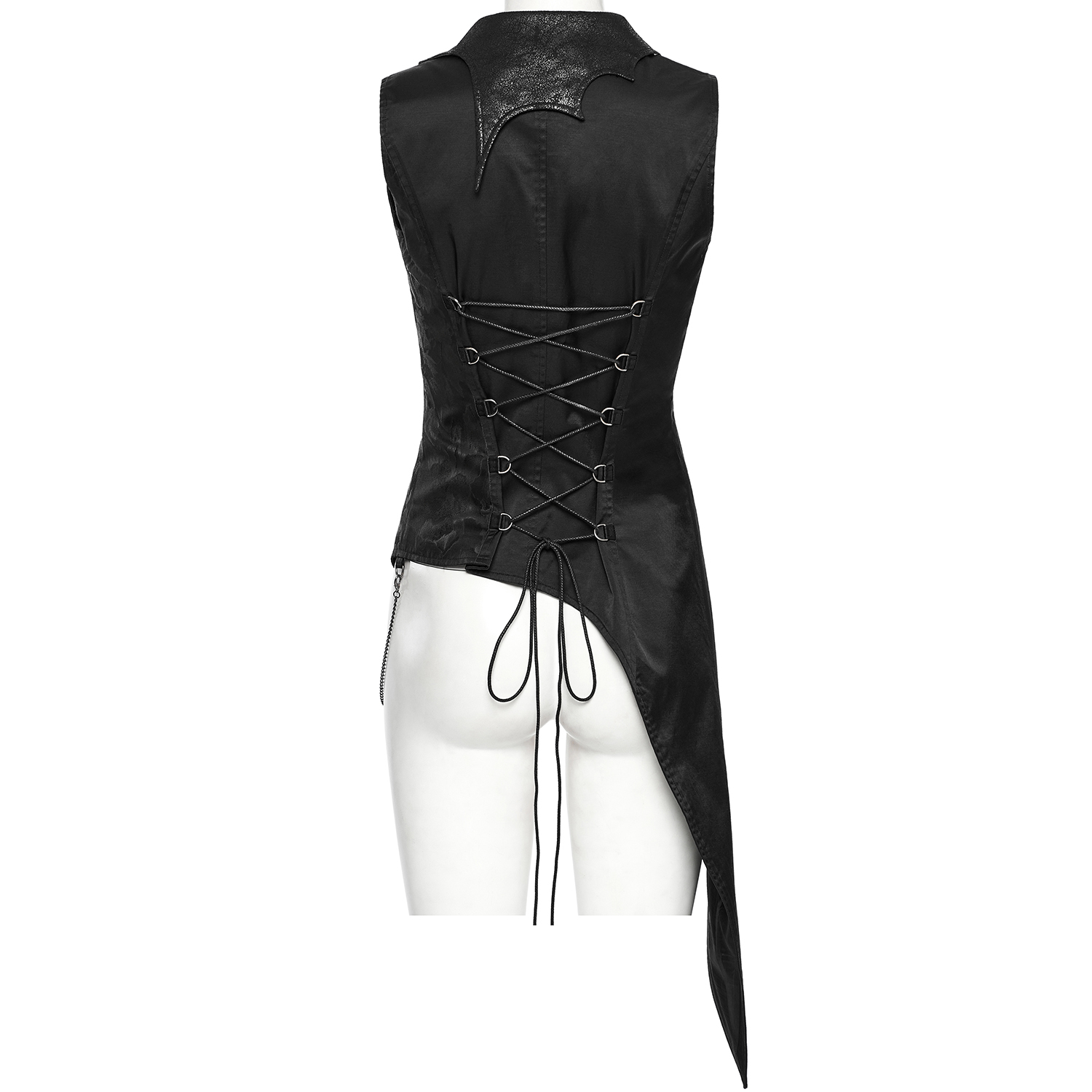 Top Corset gothique style gilet en coton mélangé côtelé noir doux et extensible • Empiècements en jacquard brodé • Buste en cœur et fermeture à glissière apparente • Laçage entièrement ajustable à...