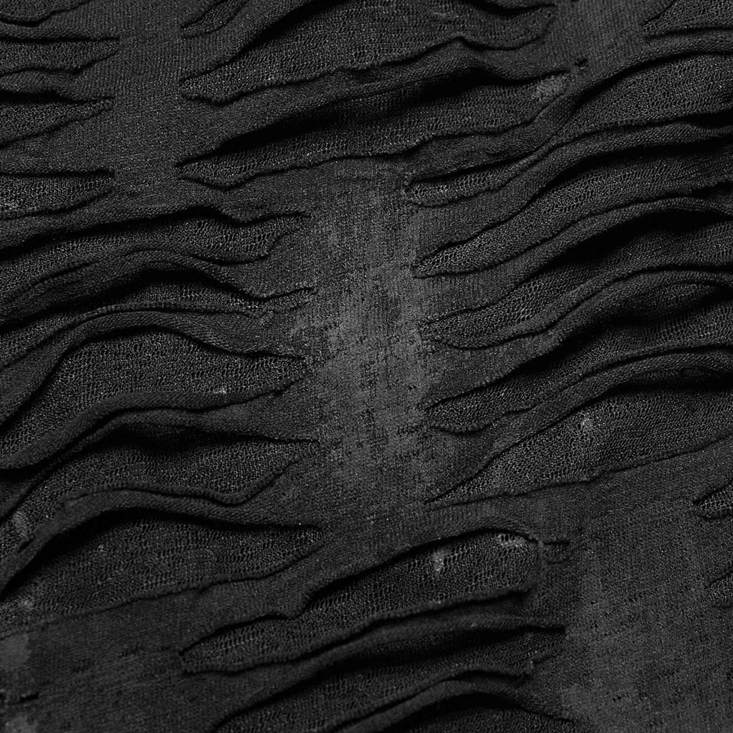 Top noir à manches longues pour femmes, de style gothique, à col haut avec découpes au niveau de la poitrine, asymétrique sur le côté avec broche d'épaule amovible. • Ourlet asymétrique sur le...