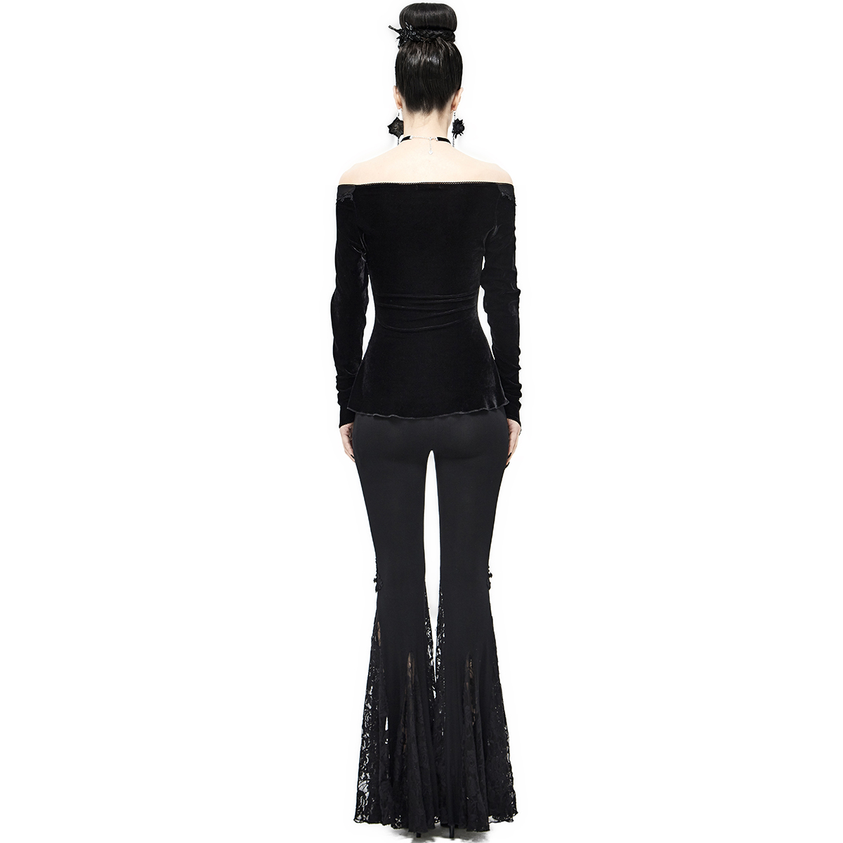 • En velours et dentelle noirs • Épaules dénudées • Encolure en dentelle à volants • Bretelles élastiques et réglables • Fleurs tridimensionnelles à la base des bretelles sur le devant • Manches...