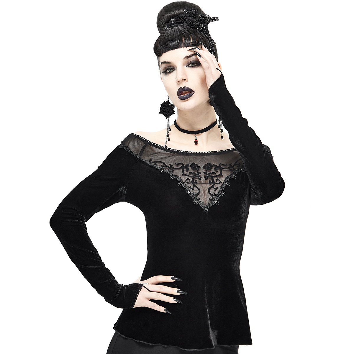 • Top Manches longues et épaules nues • Tissu impression toiles d'araignées • Col horizontal • Longues manches se finissant en mitaines • 94% Polyester, 6% Élasthanne By Punk Rave...