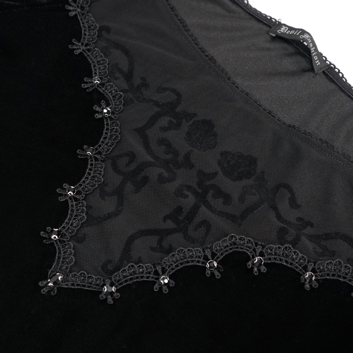 • Tulle sur les épaules avec motifs gothiques floqués sur la poitrine