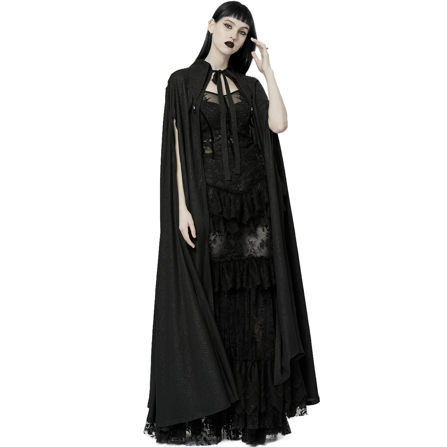 • Jupe sirène gothique taille haute • Haut en velours noir • Dentelle à motifs sur le bas et les côtés • Applique en dentelle noire brodée sur le devant, avec croix métallique et pierres rouges...