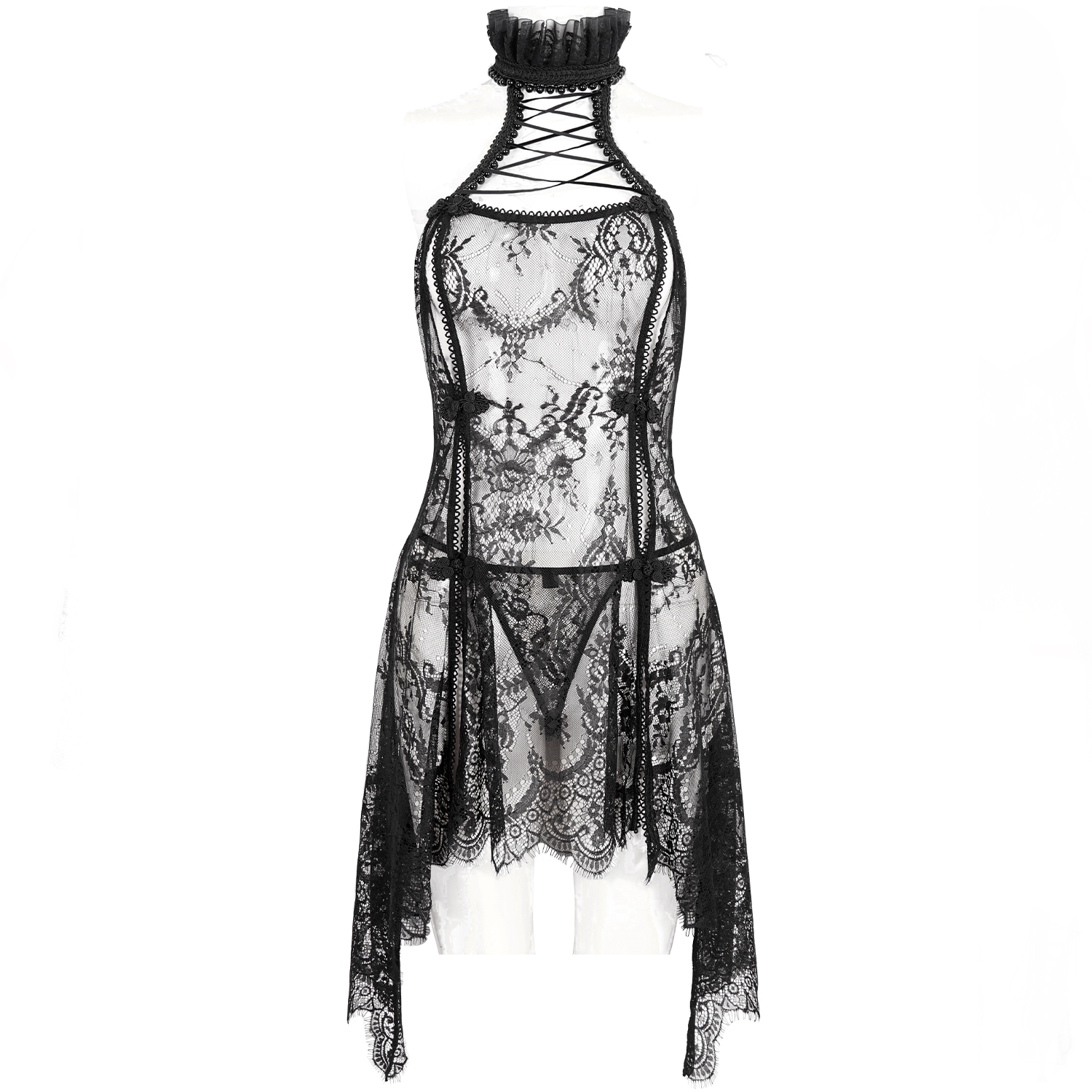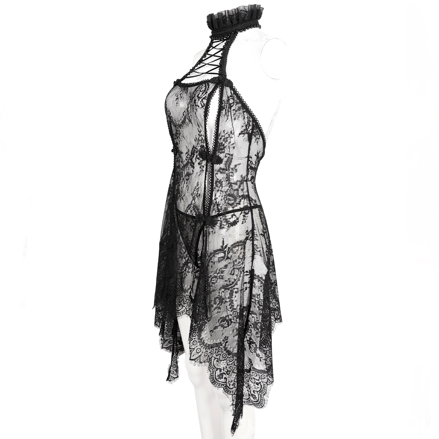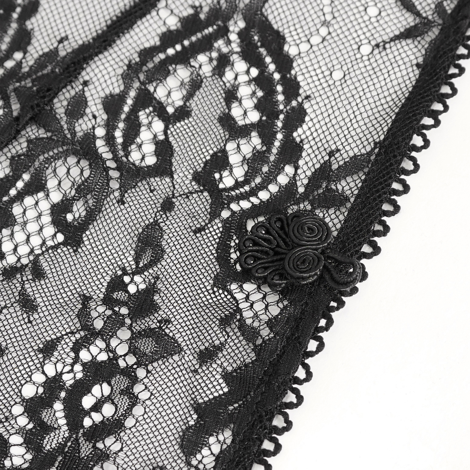 • En dentelle noire, fine et transparente • Col montant • Ouverture sur la poitrine • Bretelles et laçage dans le dos pour un ajustement parfait • 60% Coton, 40% Polyamide • POUR DES RAISONS...