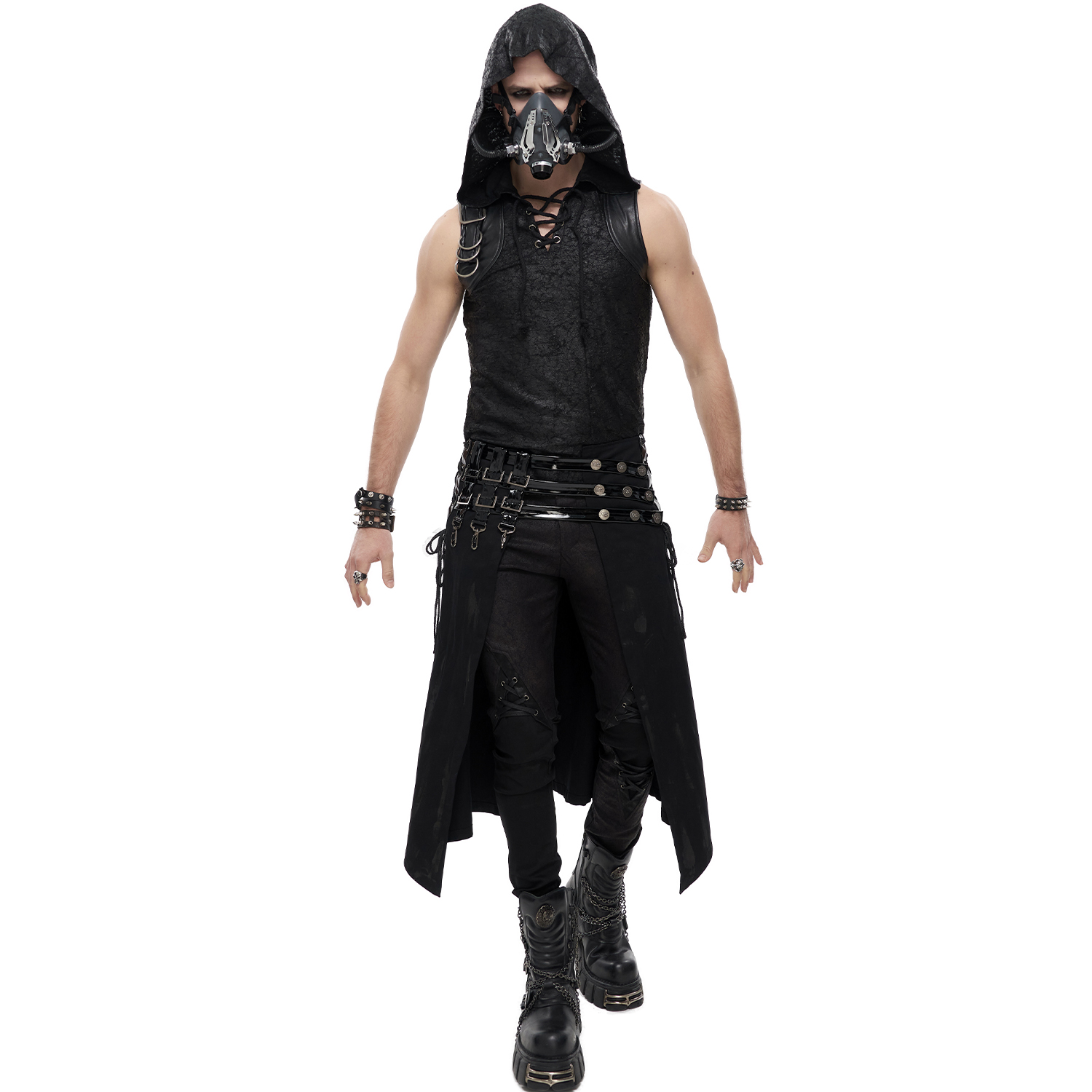 Pantalon homme déchiré de style gothique post-apocalyptique • En denim extensible et durable • Deux poches plus une poche profonde à l'avant • Deux poches à l'arrière • Points fantaisie...
