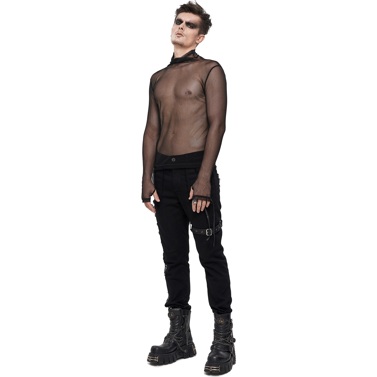 Pantalon homme déchiré de style gothique post-apocalyptique • En denim extensible et durable • Deux poches plus une poche profonde à l'avant • Deux poches à l'arrière • Points fantaisie...