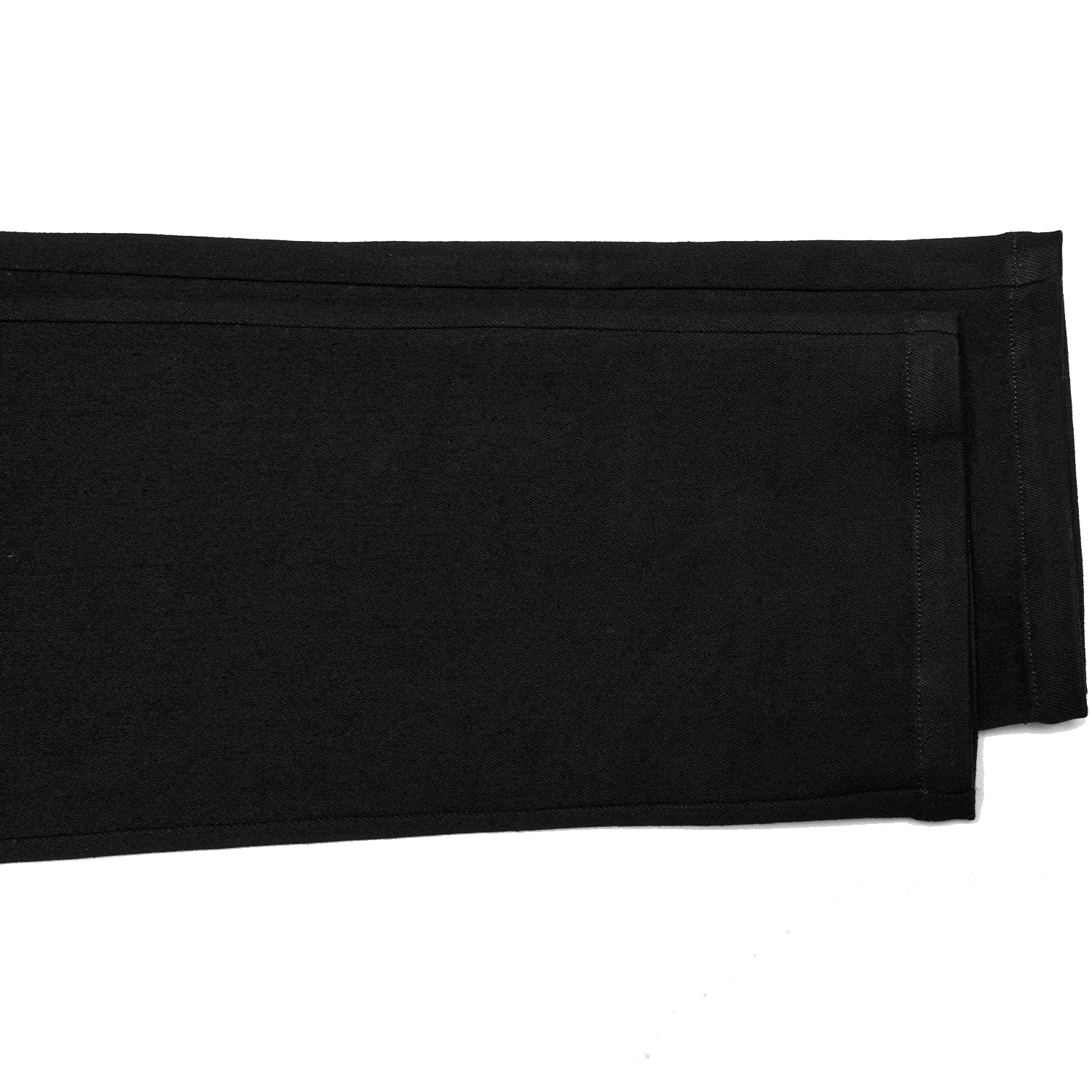 • En sergé noir de haute qualité • Boucles en simili cuir sur le côté droit • Poches avant et arrière rivetées • Chaîne métallique amovible • Poche latérale à rabat avec boutons-pression • Passants...