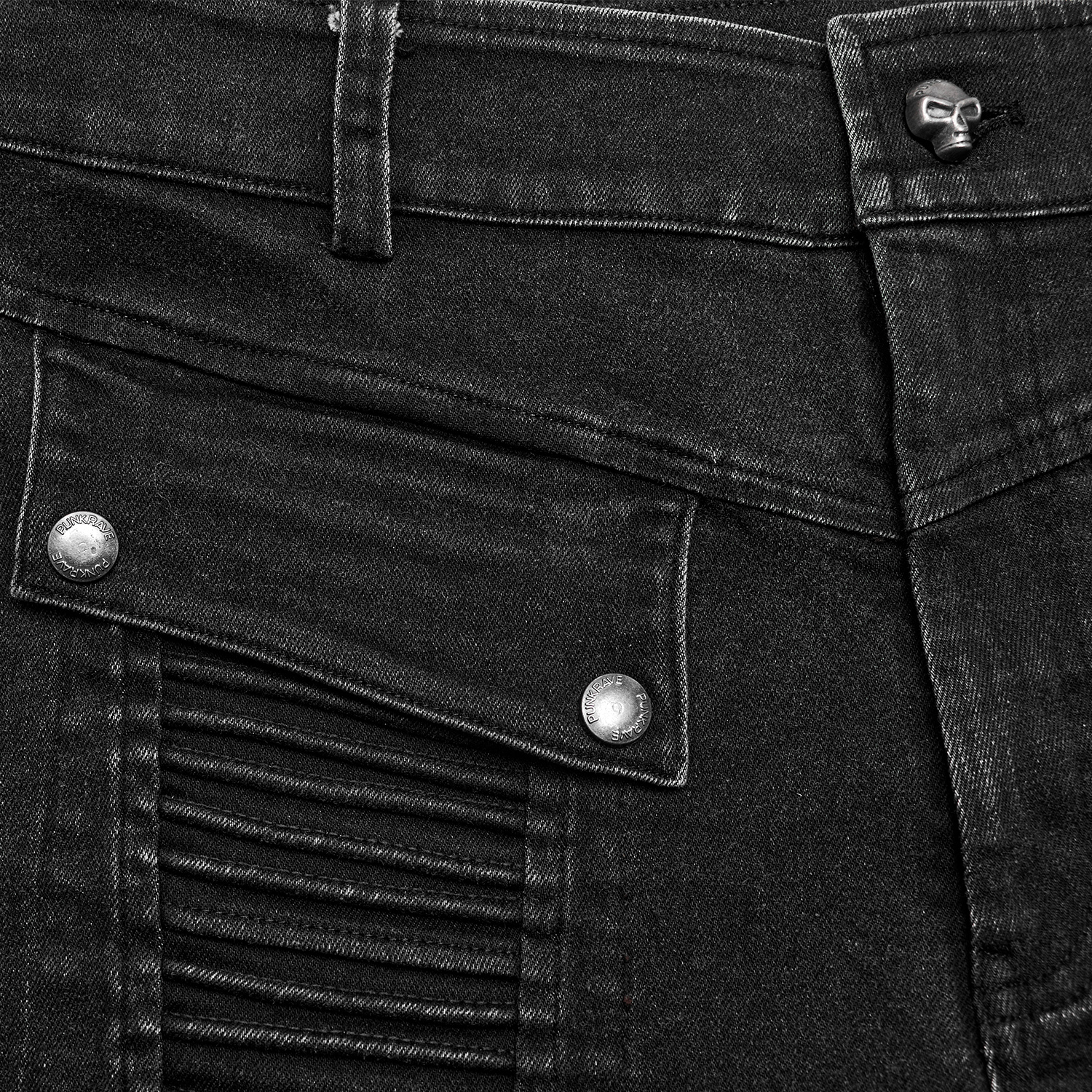 • Fermeture à glissière et bouton métallique en forme de skull