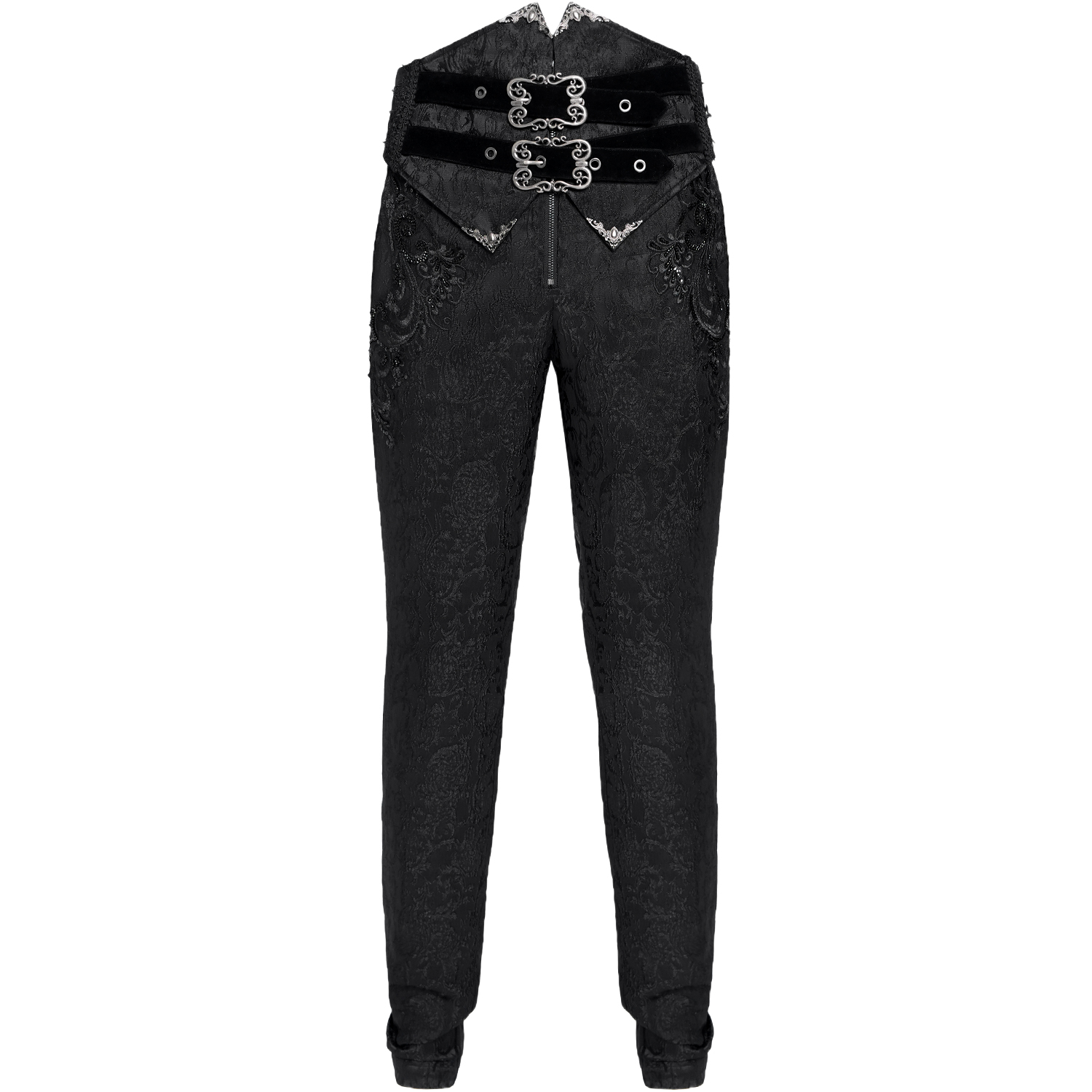 Pantalon noir pour homme gothique en tissu extensible avec détails en cuir synthétique et clous noirs. • Fermeture à glissière avec bouton Skull. • 99% Coton, 1% Autres fibres By Punk Rave...