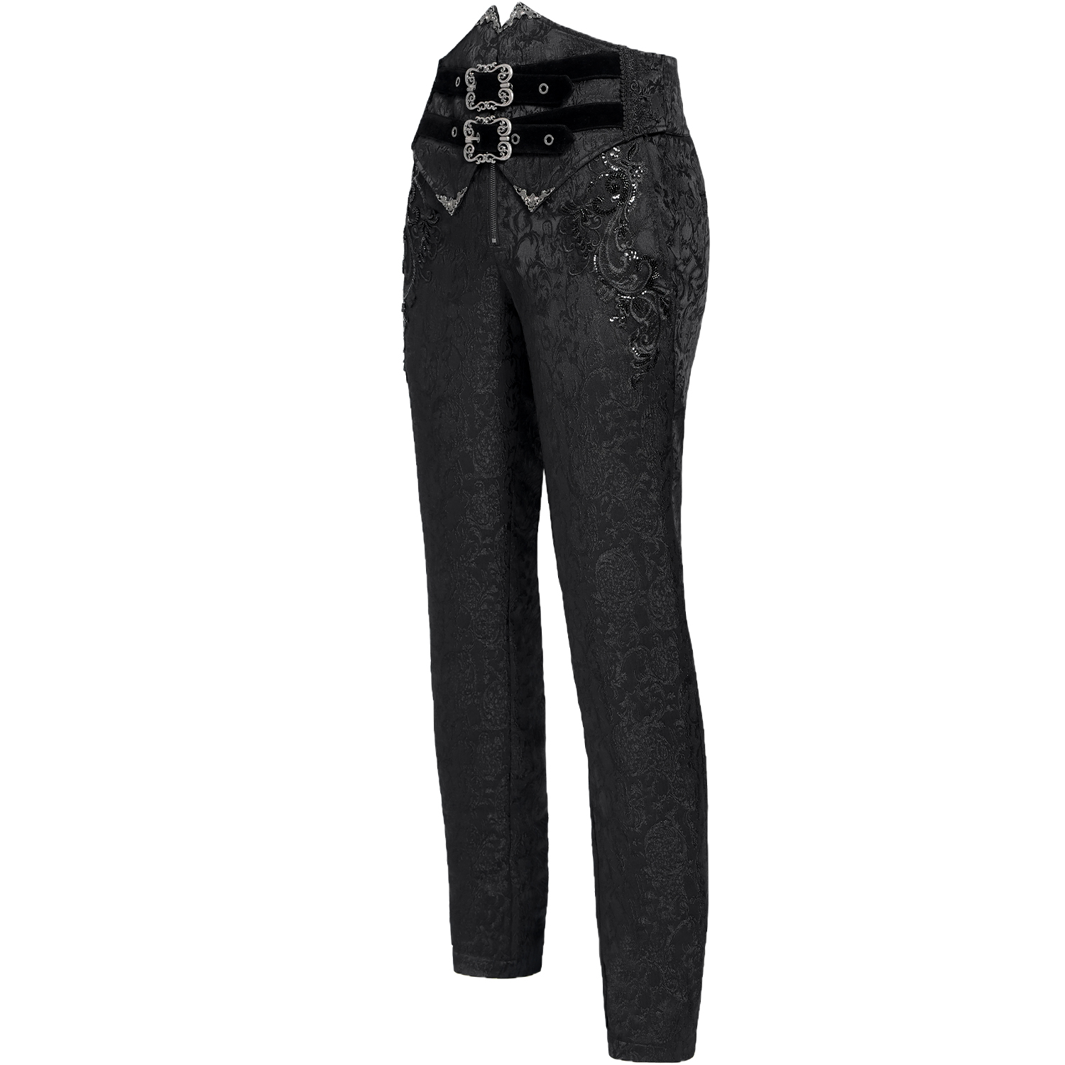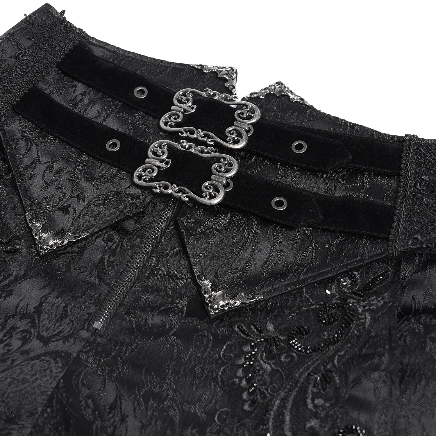 • En tissus sergé et jacquard • Boucles gothiques sculptées sur les côtés • Décoration en dentelle des deux côtés de la taille • Laçage avec œillets à l'arrière, légèrement ajustable • La...