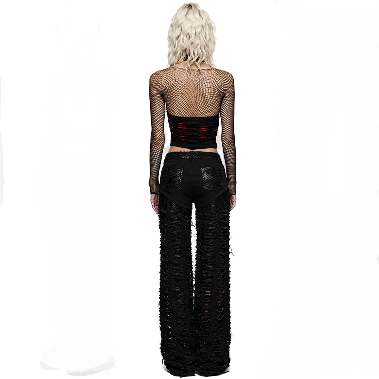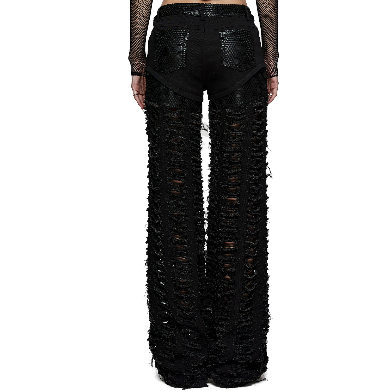 • Présence de résille déchirée sur le haut des cuisses, la ceinture et les poches arrières